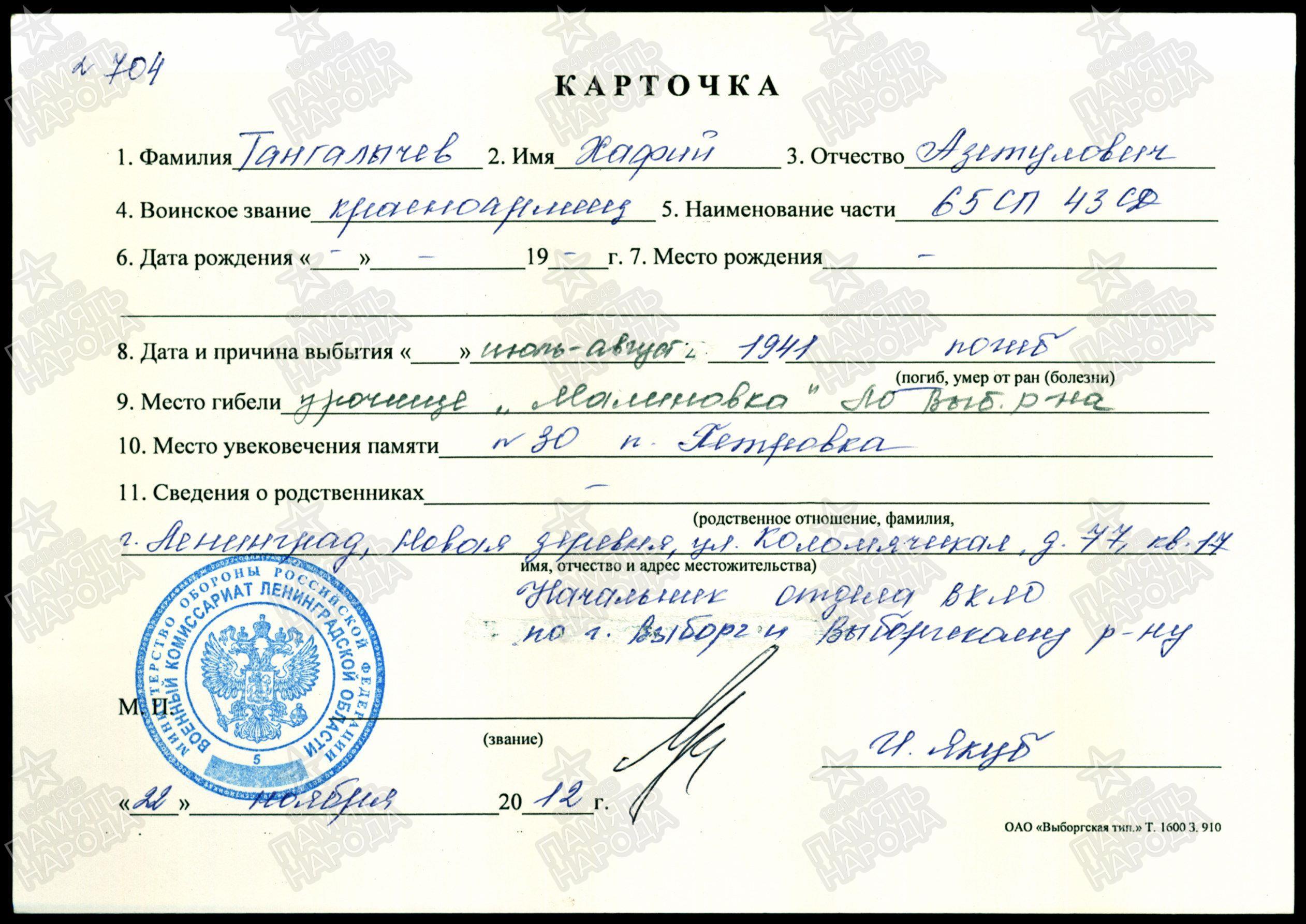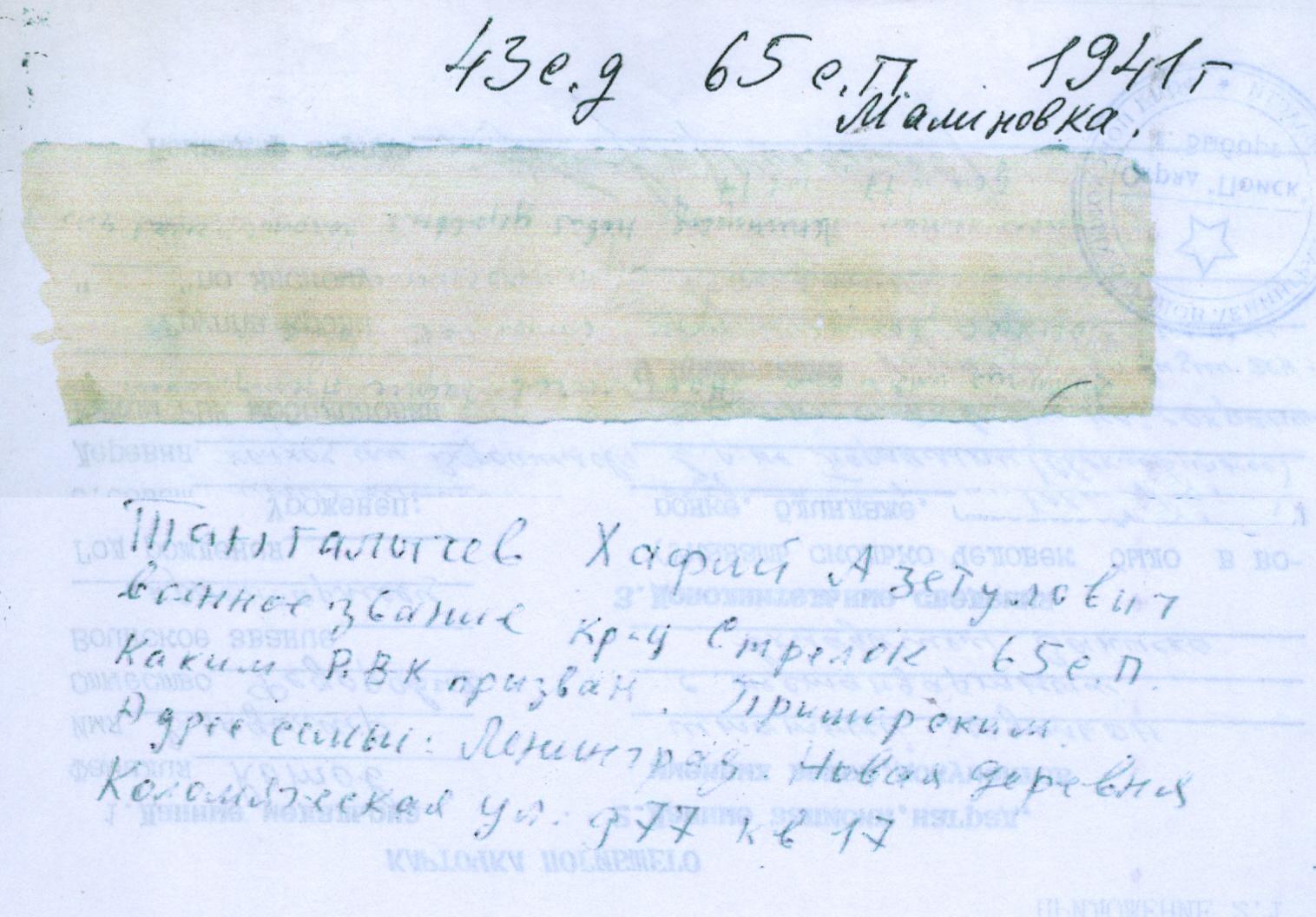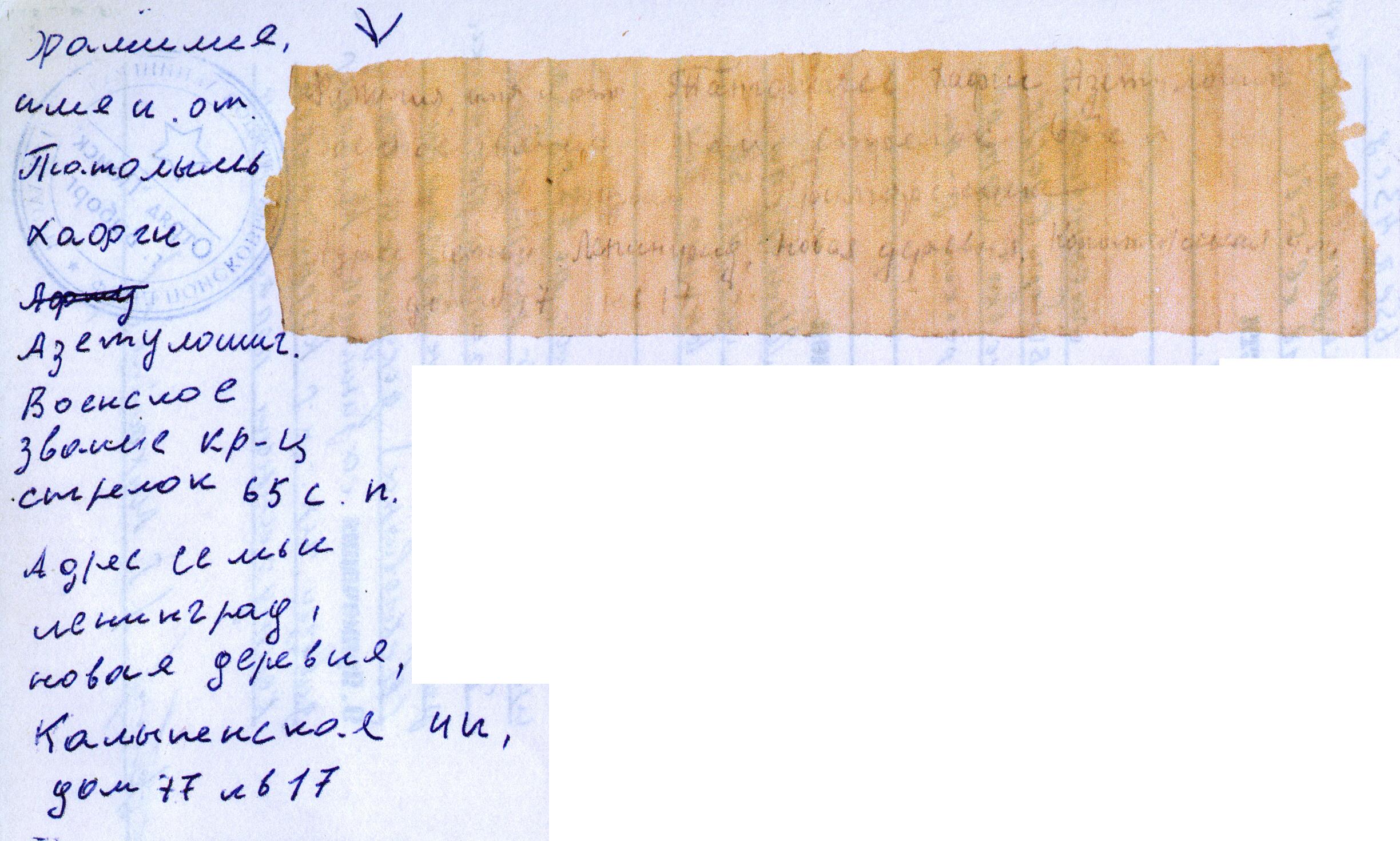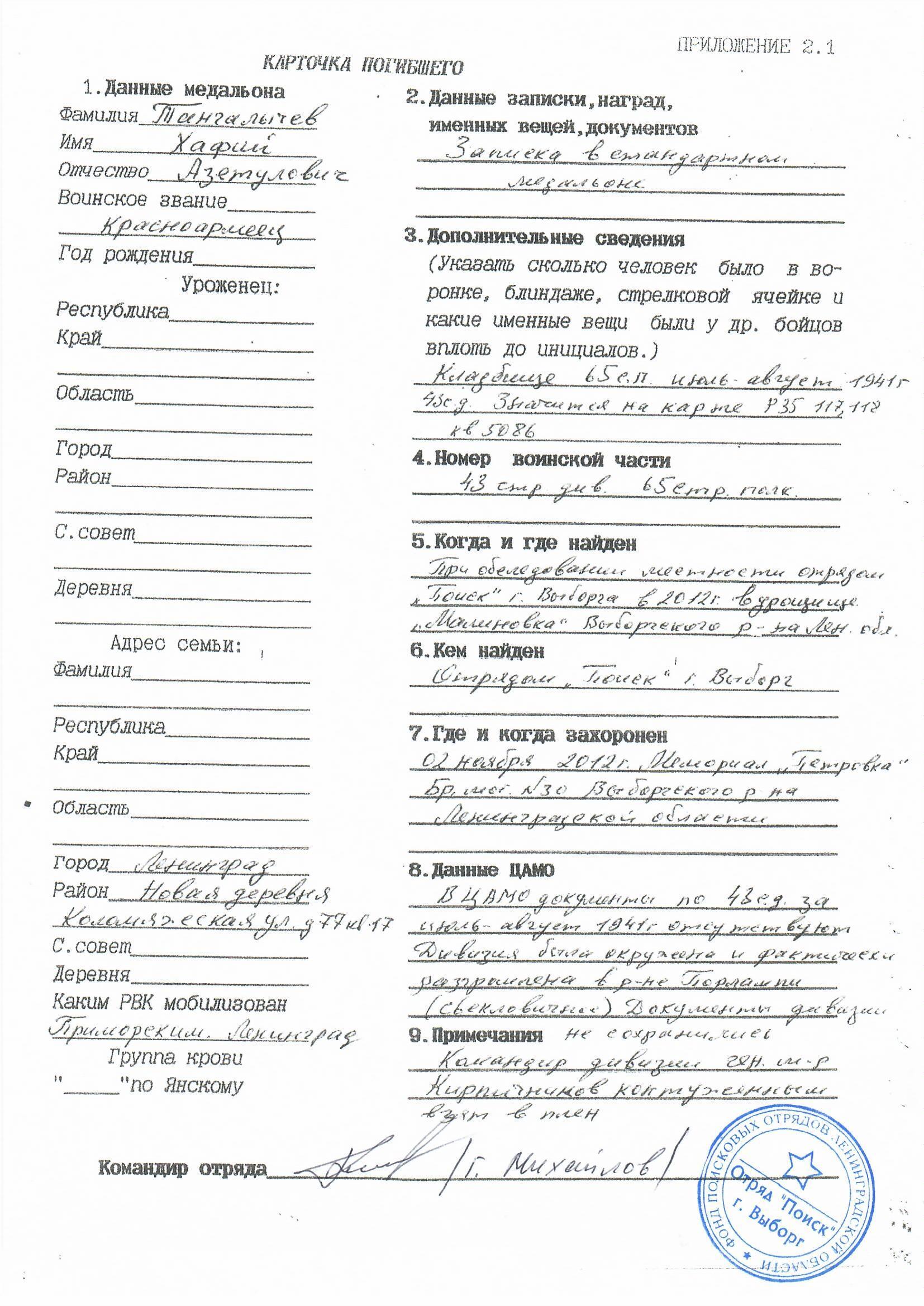 | Призван РВК | Приморский РВК, г.Ленинград |