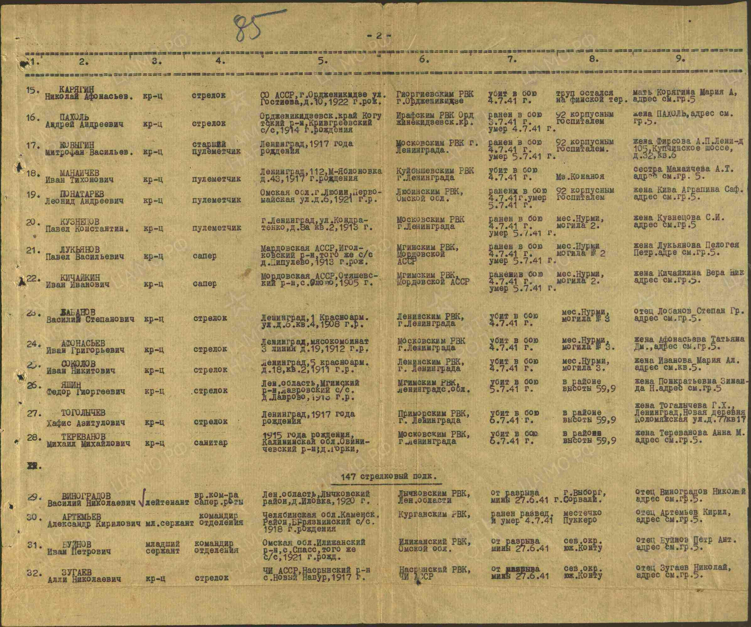 | Дата выбытия | 06.07.1941 |