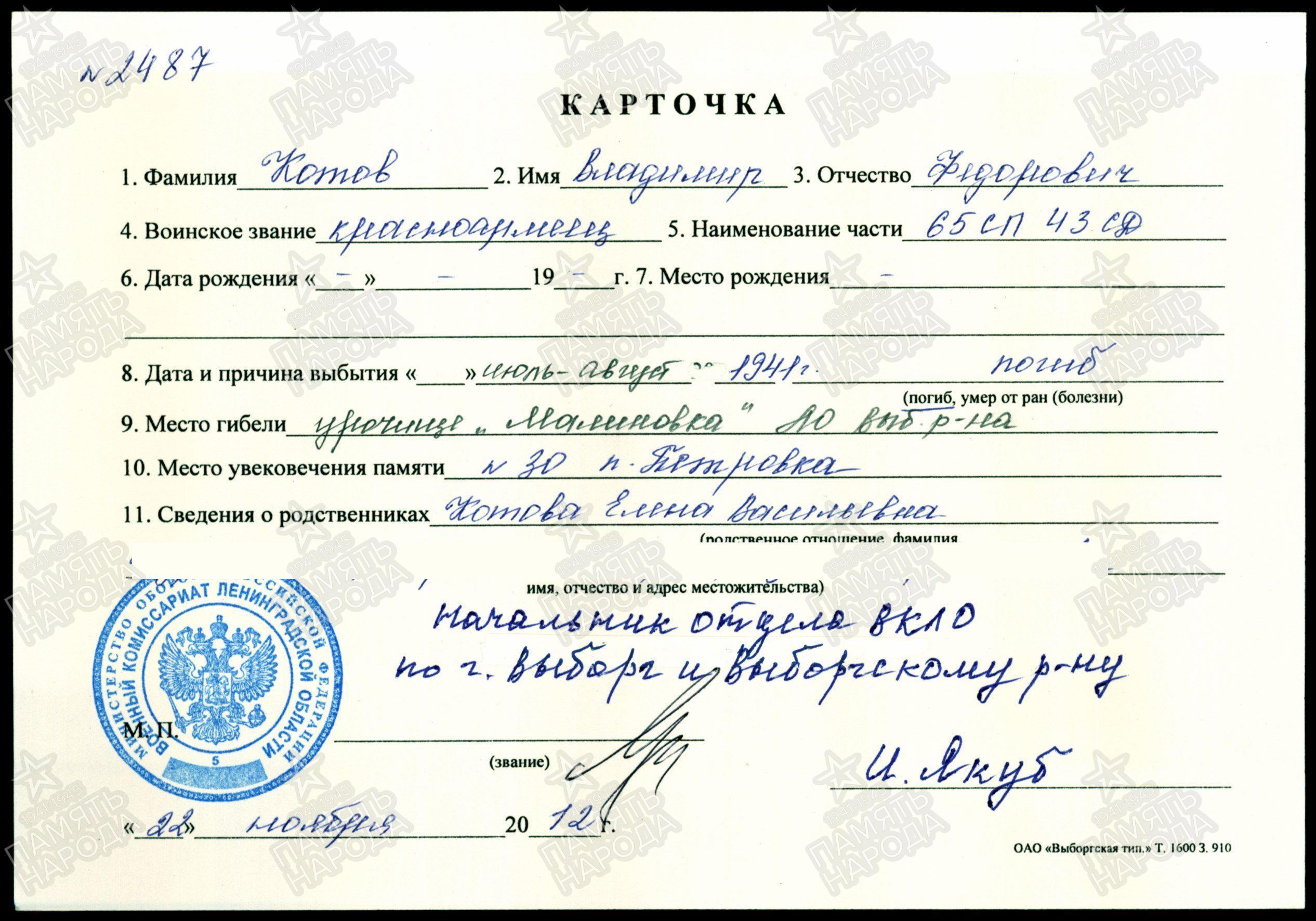 | Призван РВК | Черемисиновский РВК, Курская обл. |