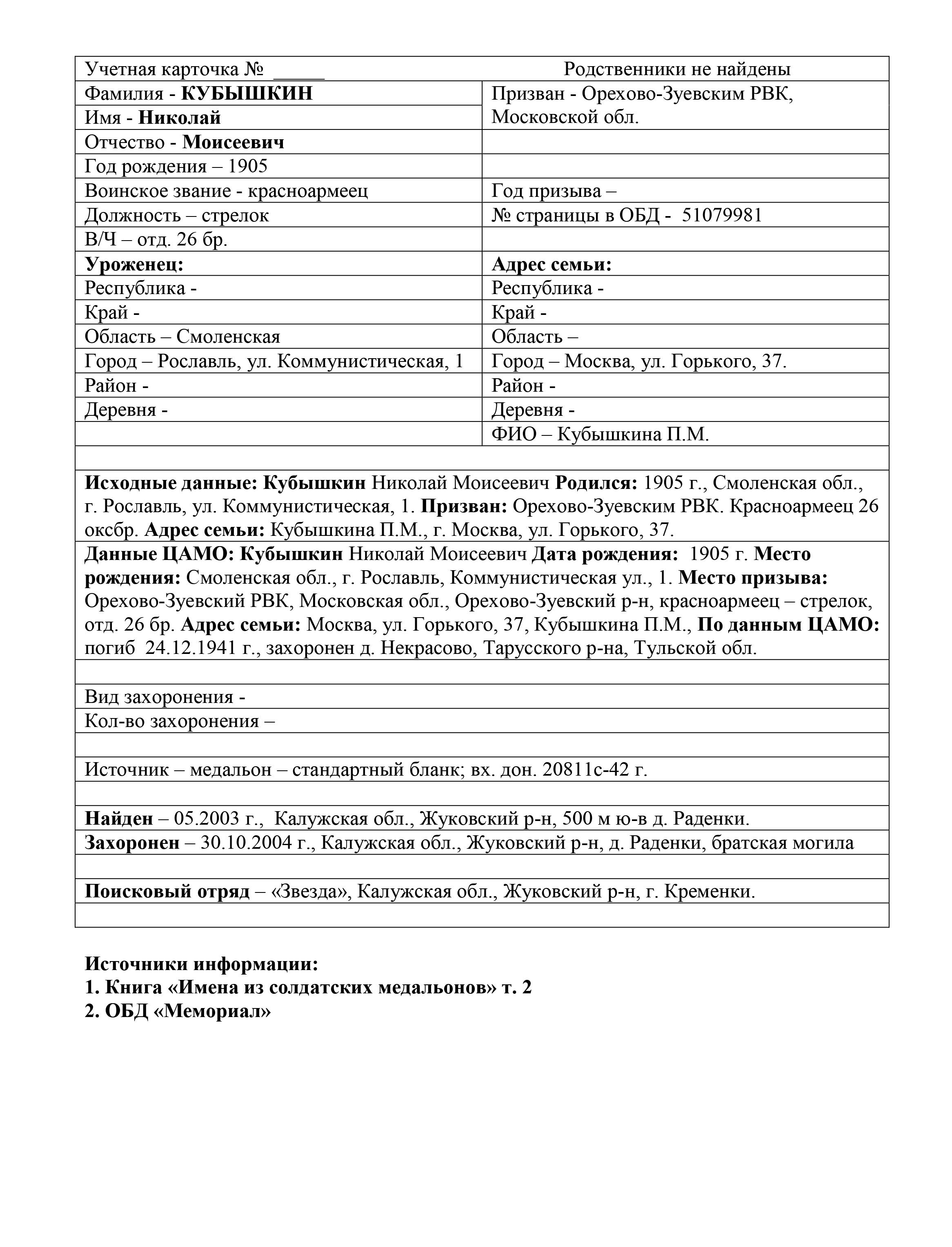 | Призван РВК | Орехово-Зуевский РВК, Московская обл. |