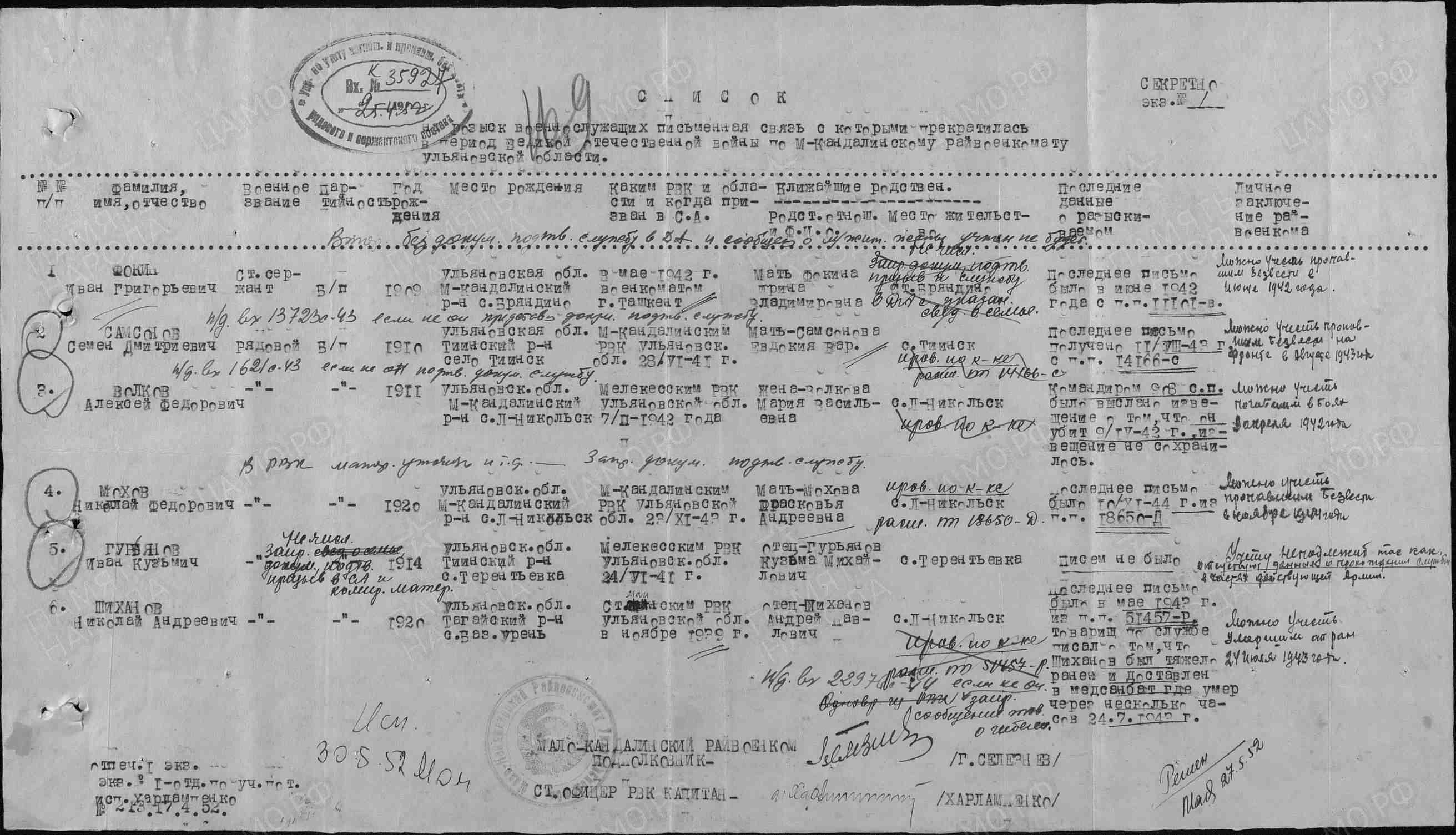 Призван РВК | Старомайновский РВК Куйбышевской обл. |
