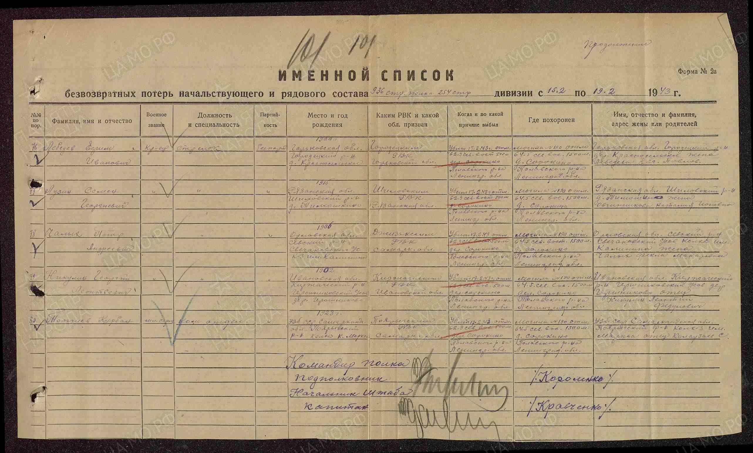 | Дата выбытия | 17.02.1943 |