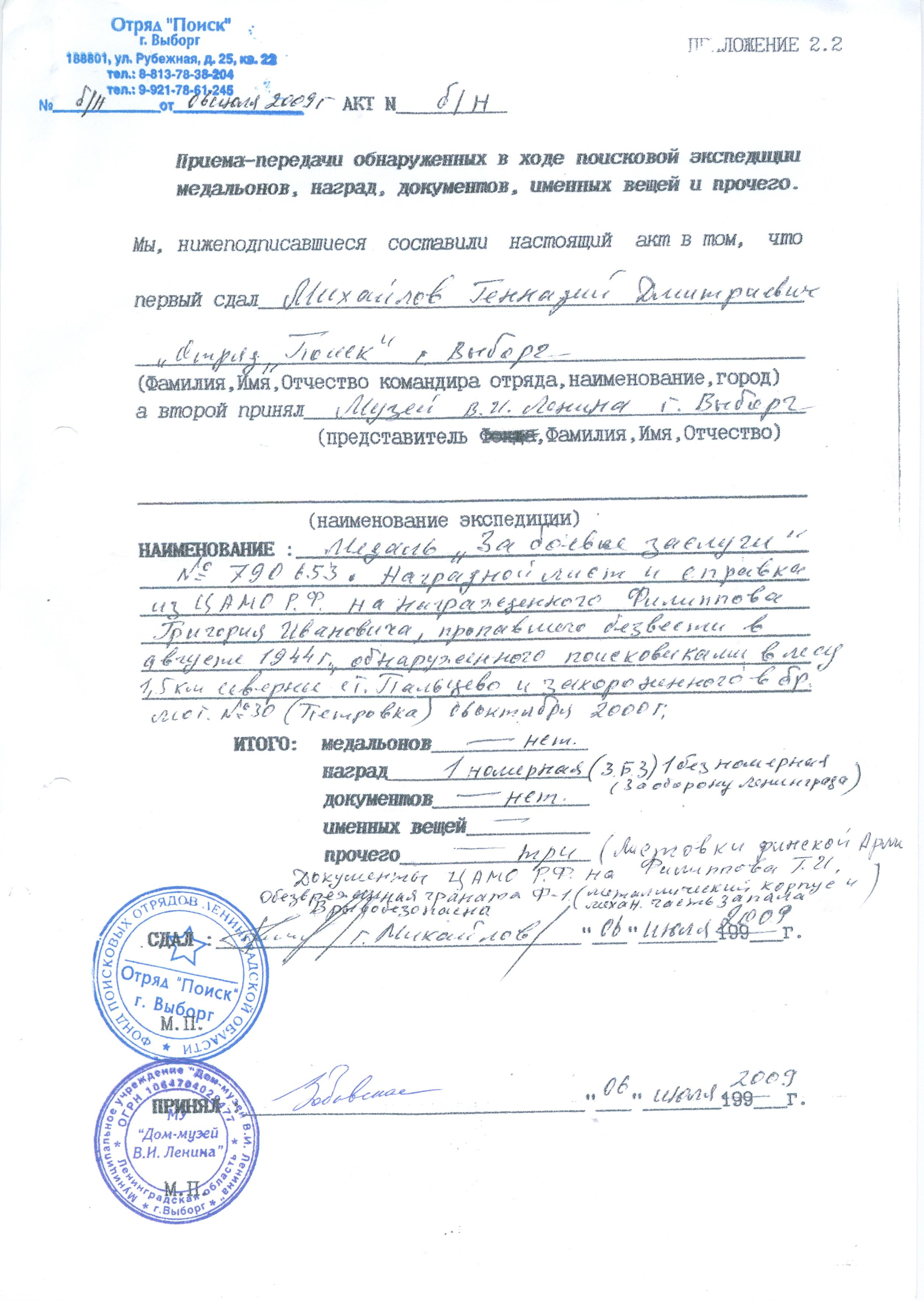| Отряд | поисковым отрядом "Поиск", г.Выборг |