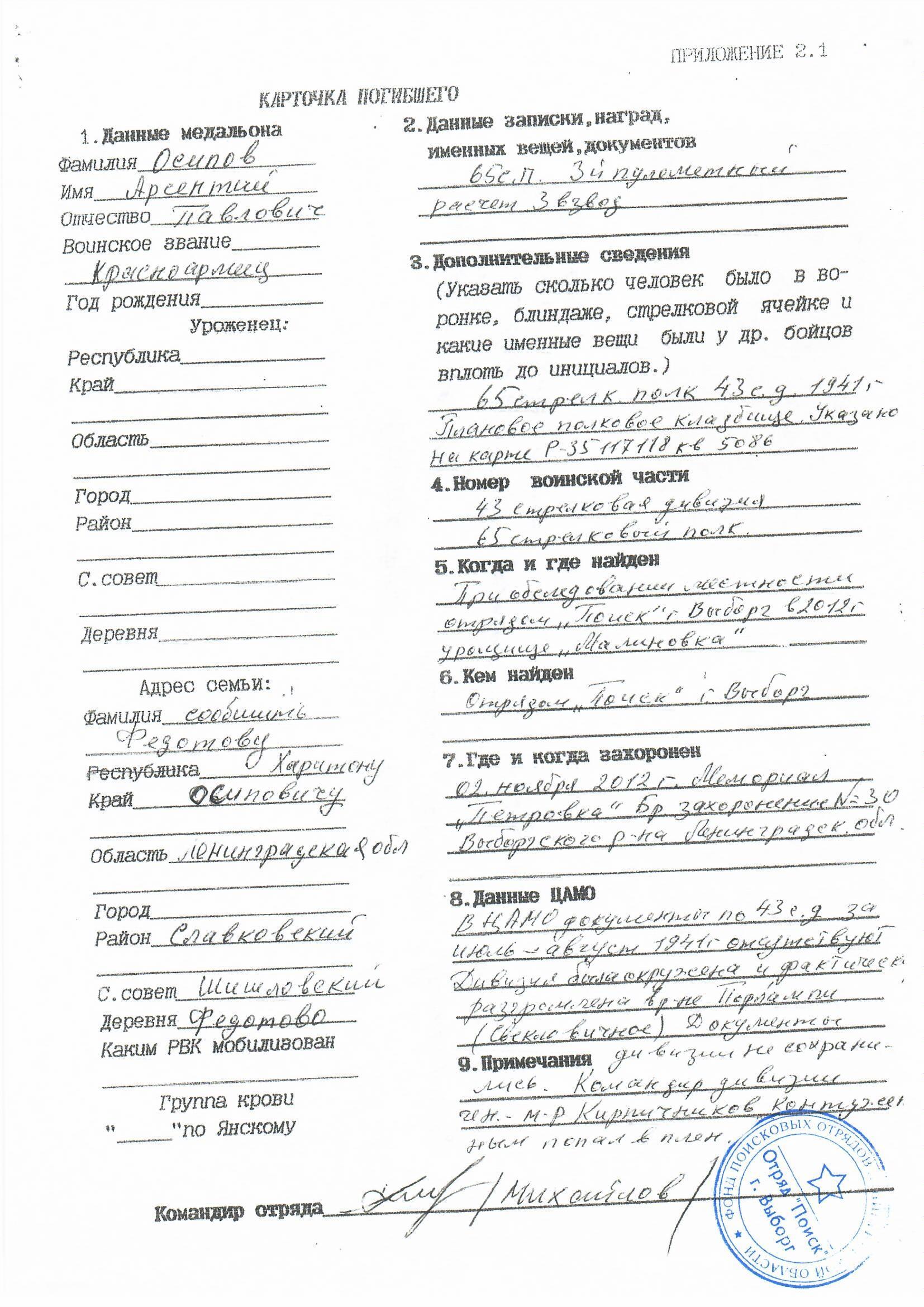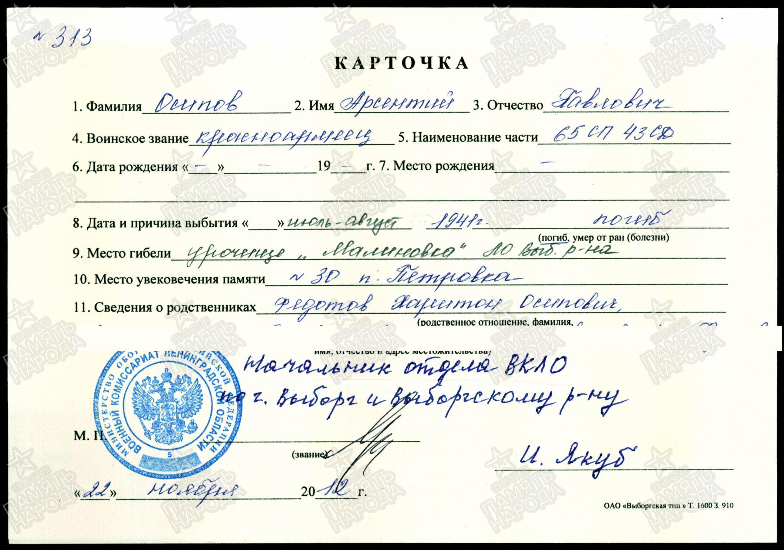 | Призван РВК | неизвестный РВК, г.Ленинград |