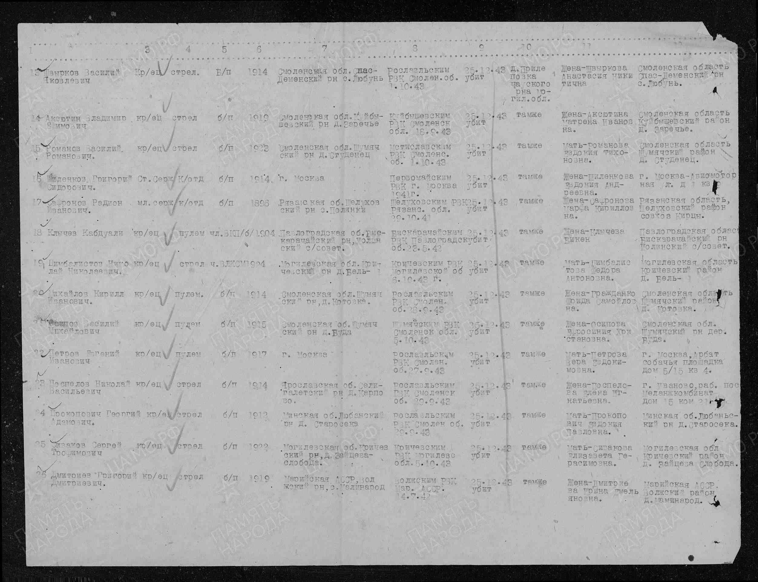 | Призван РВК | Шелуховский РВК, Рязанская обл., 29.10.1941г. |