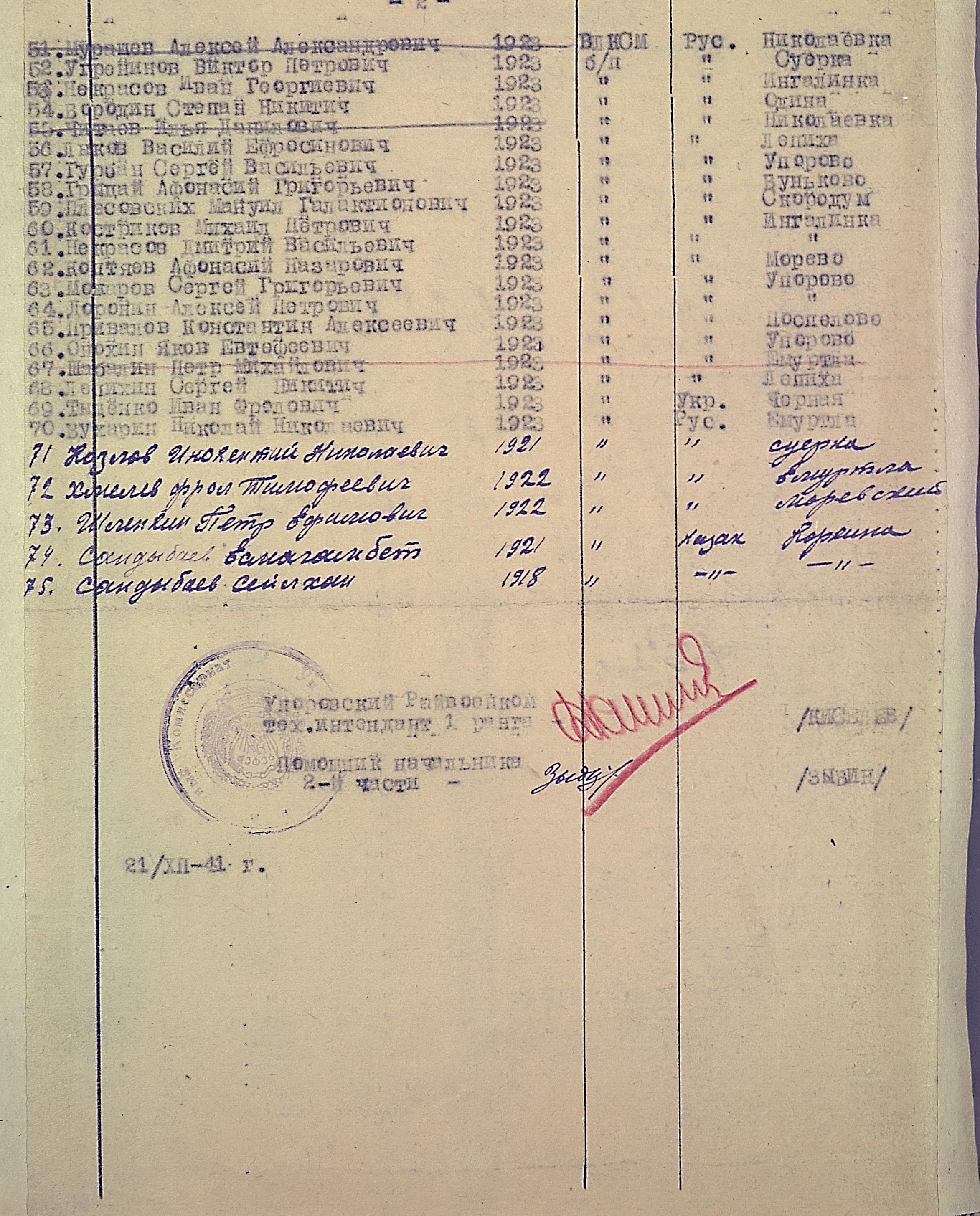 | Призван РВК | Упоровский РВК, Омская обл., 21.12.1941г. |