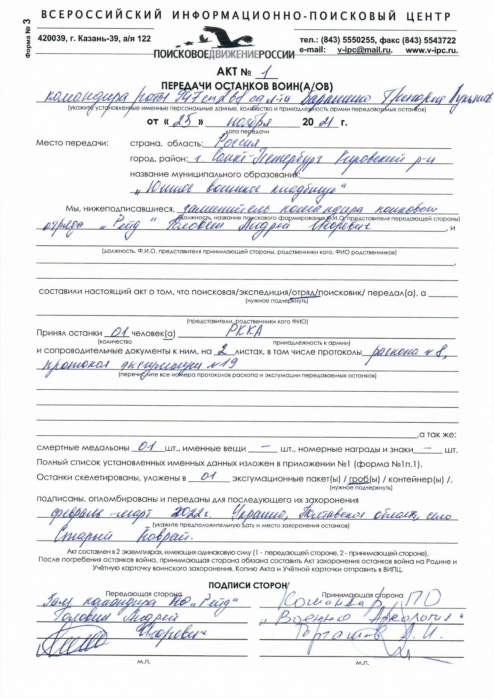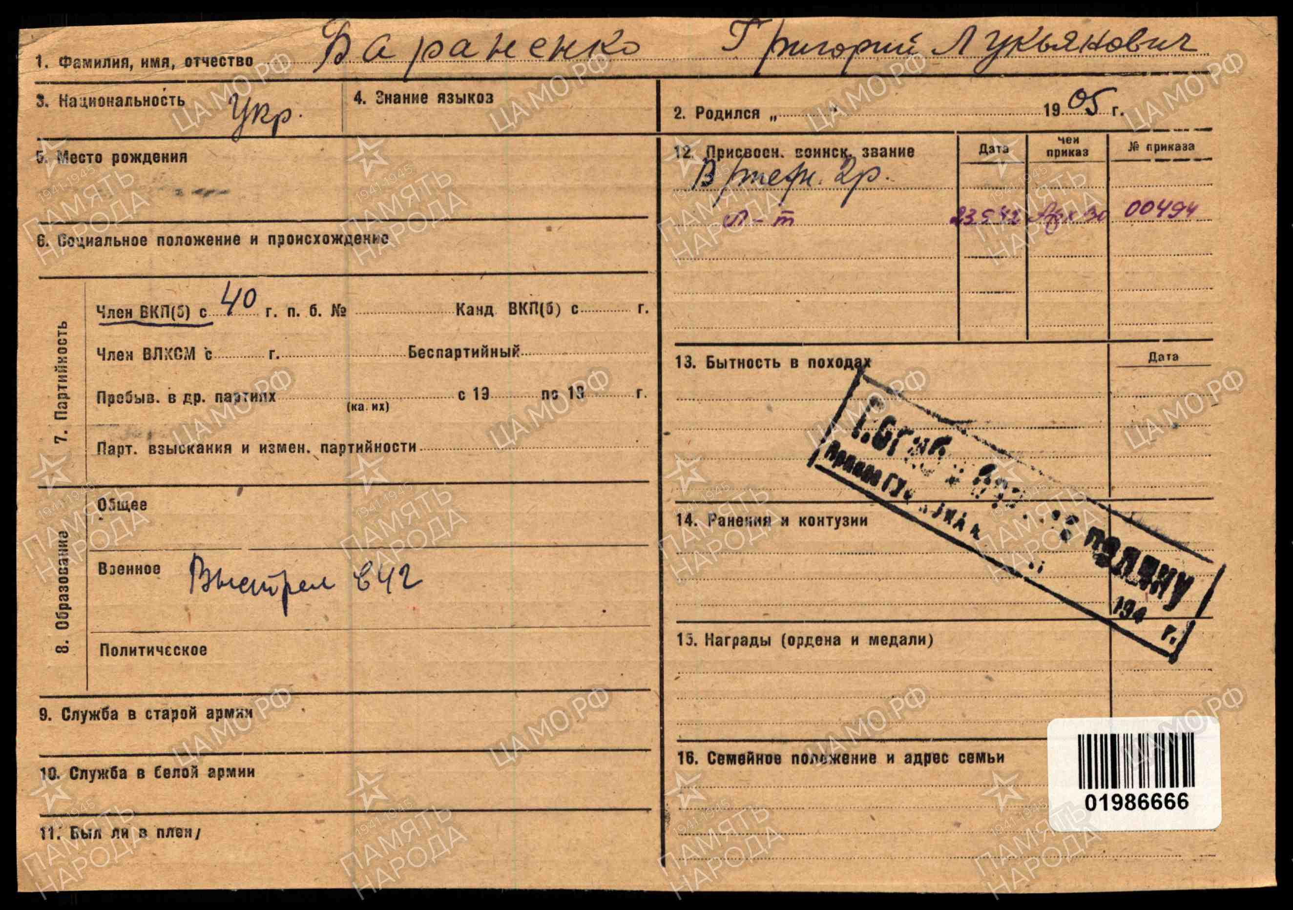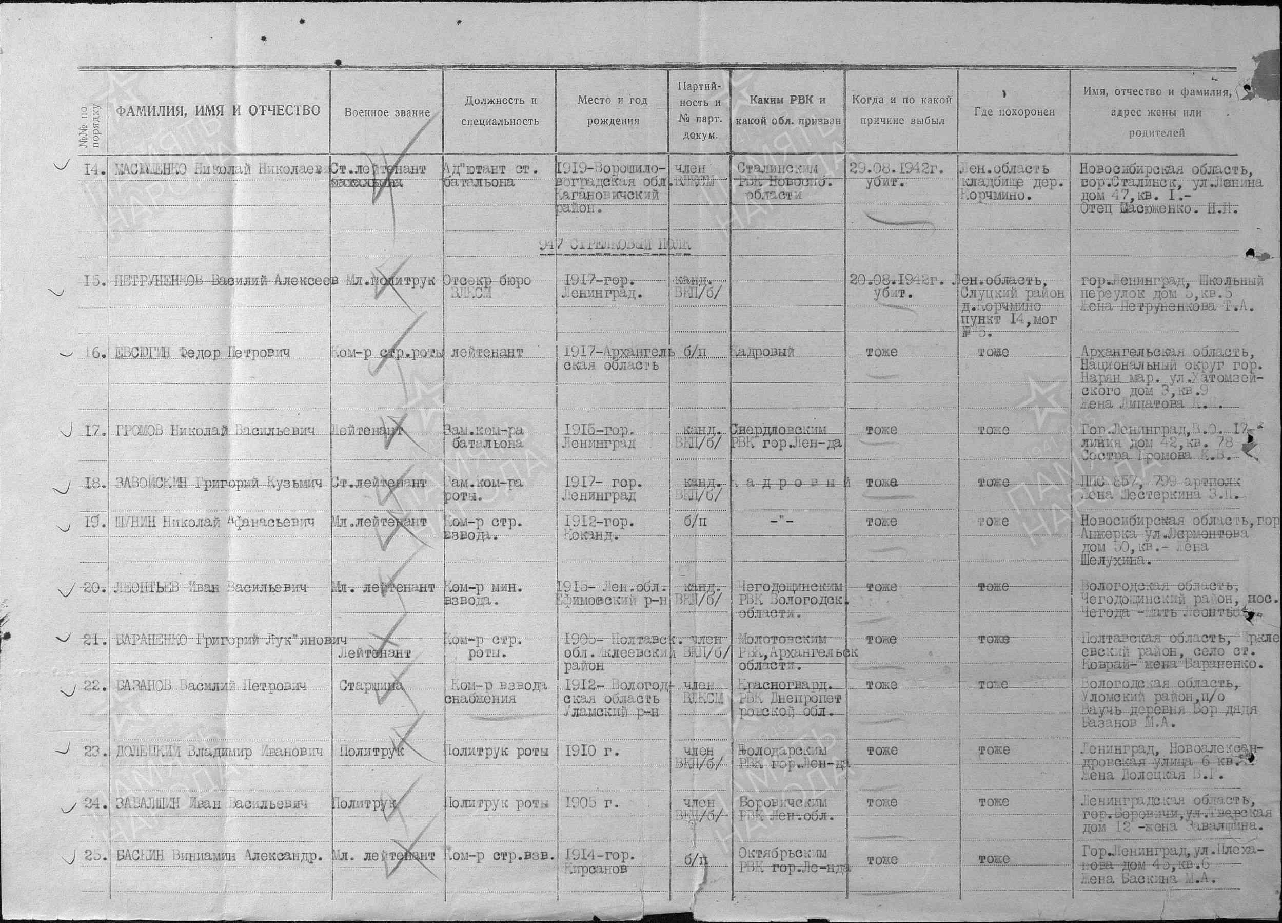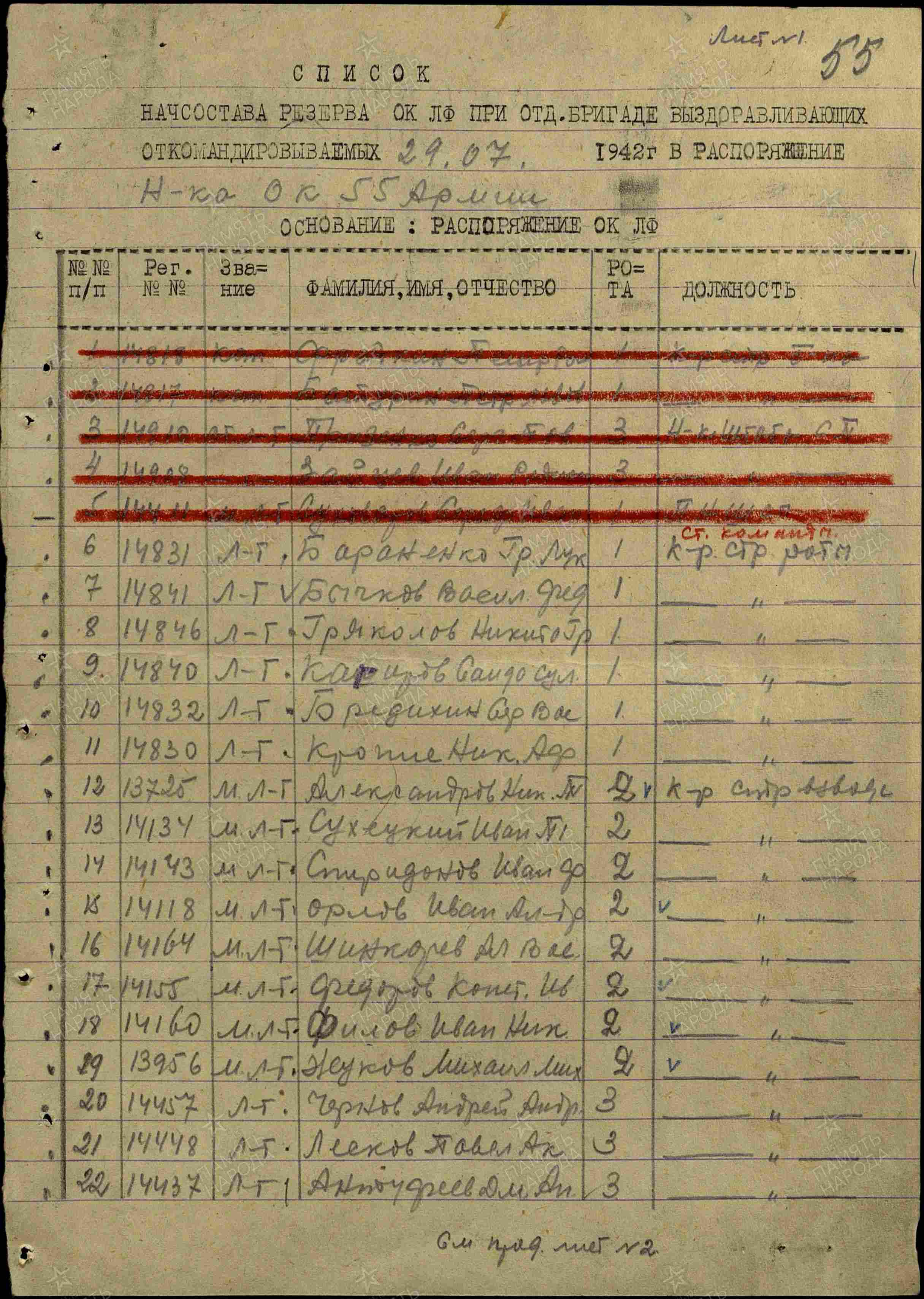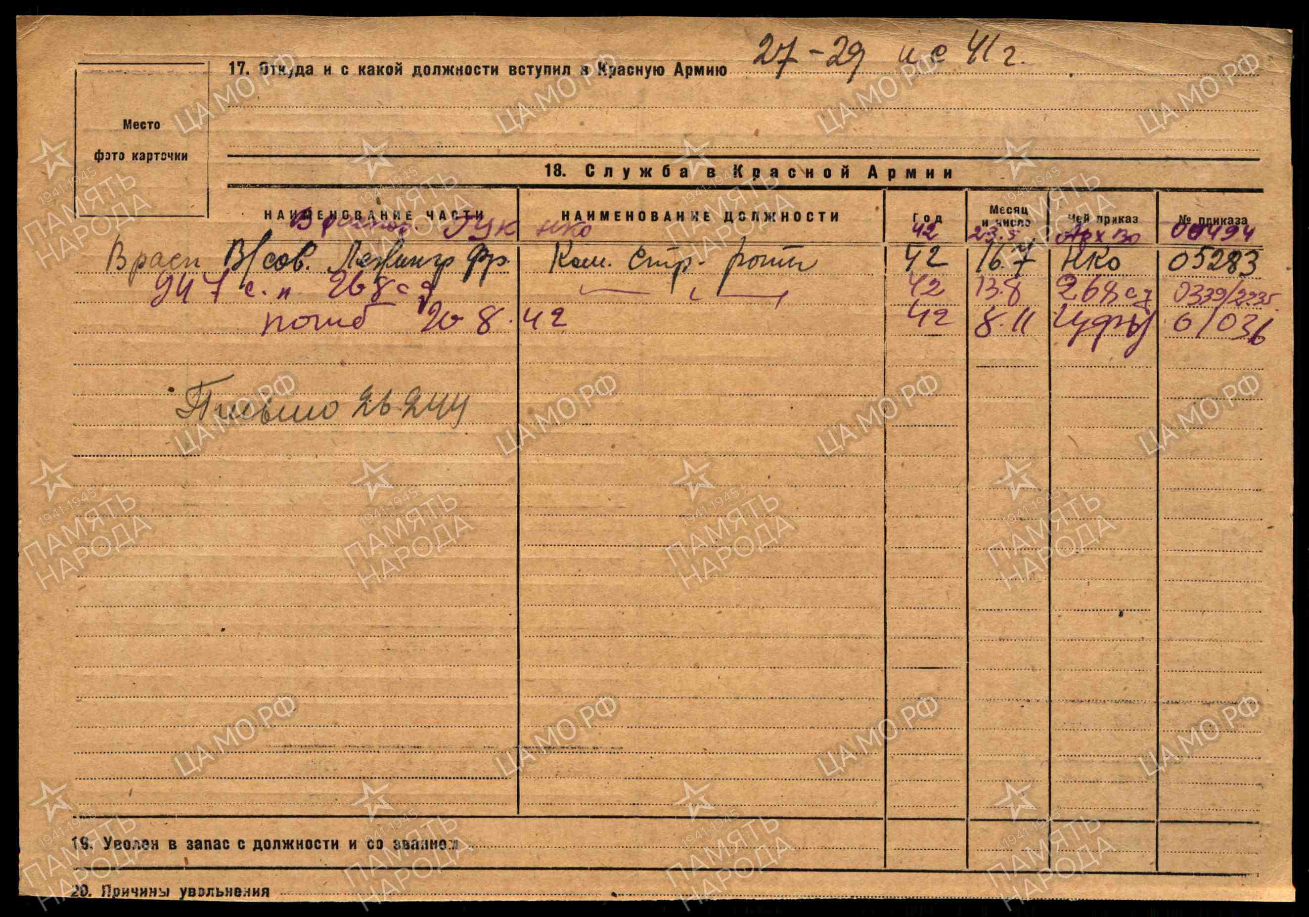 | Призван РВК | Молотовским РВК Архангельской области 23.06.1941 г. |