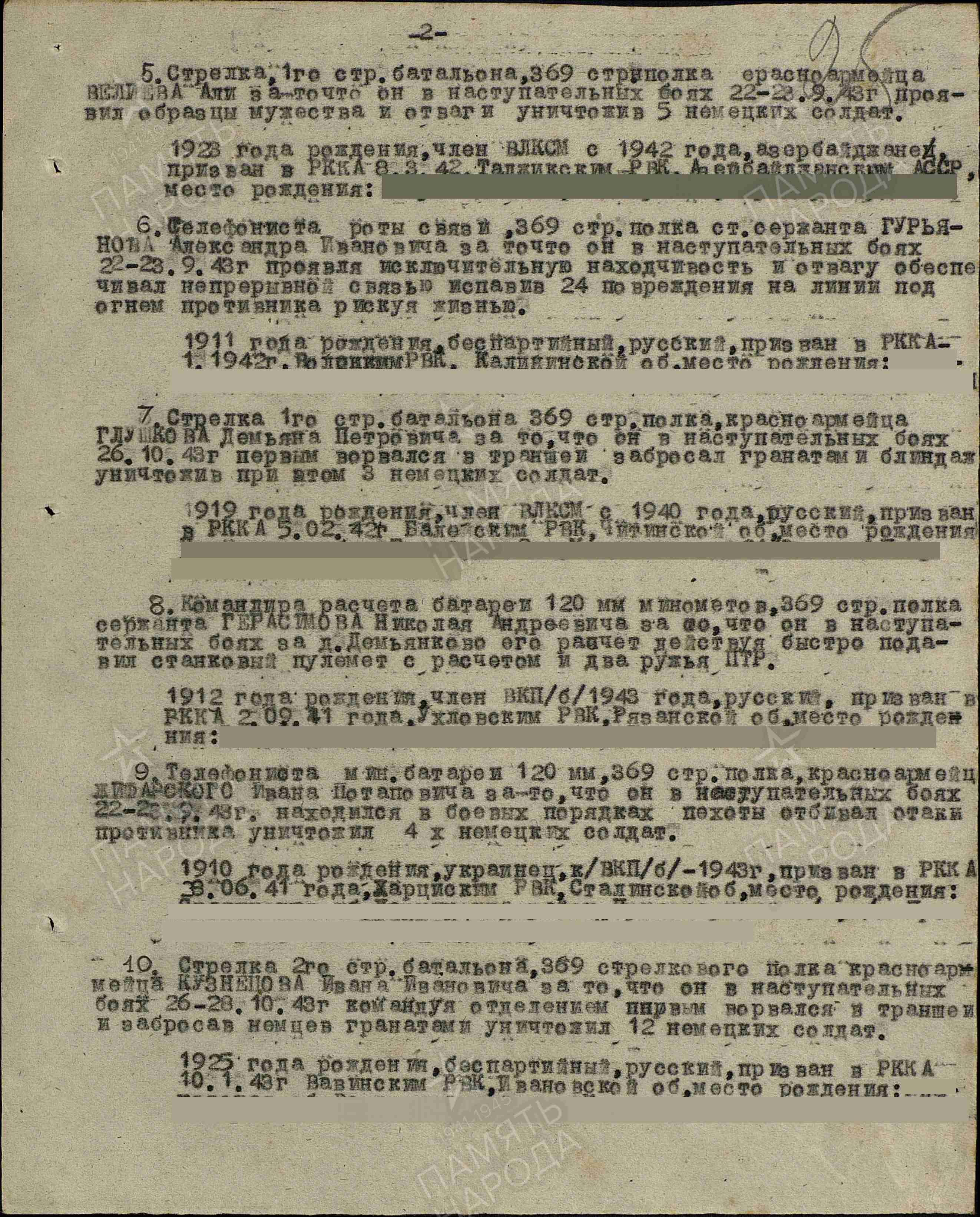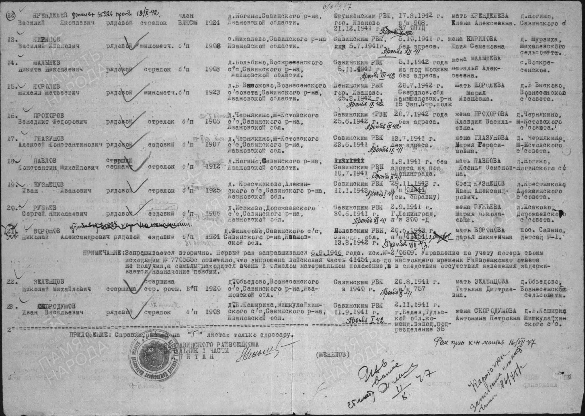 | Призван РВК | Савинский РВК, Ивановская обл., 11.01.1943г. |