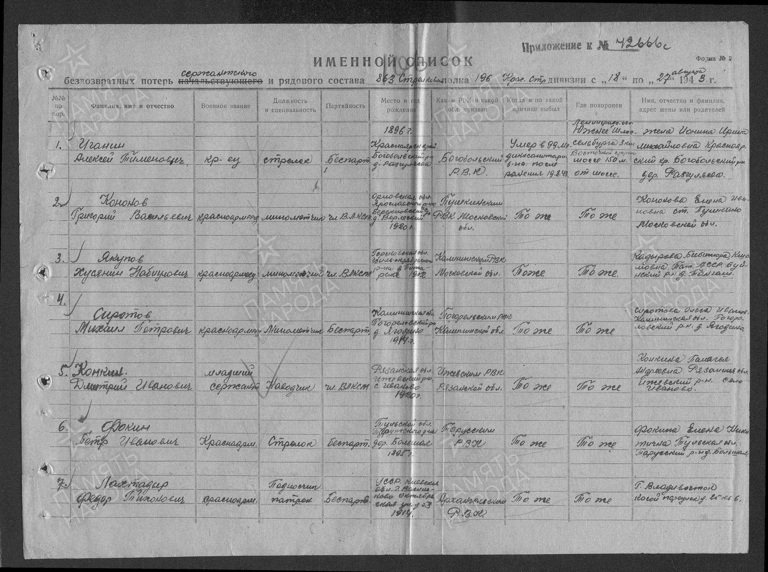 Как установлен: книга погребения части , именной список части