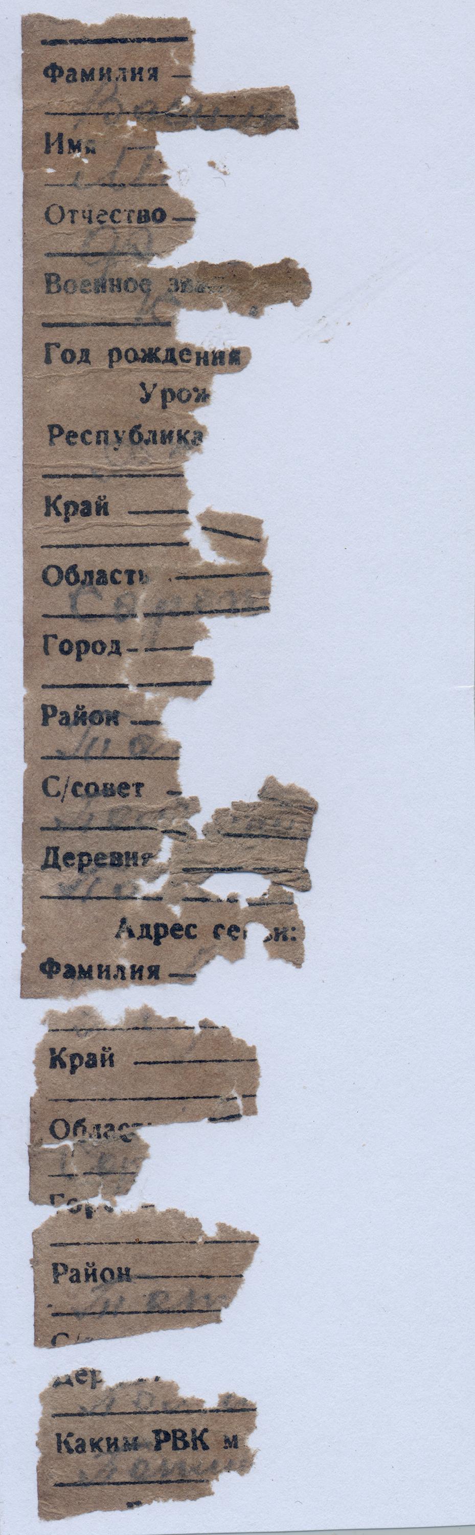 | Призван РВК | Татищевский РВК, Саратовская обл. |