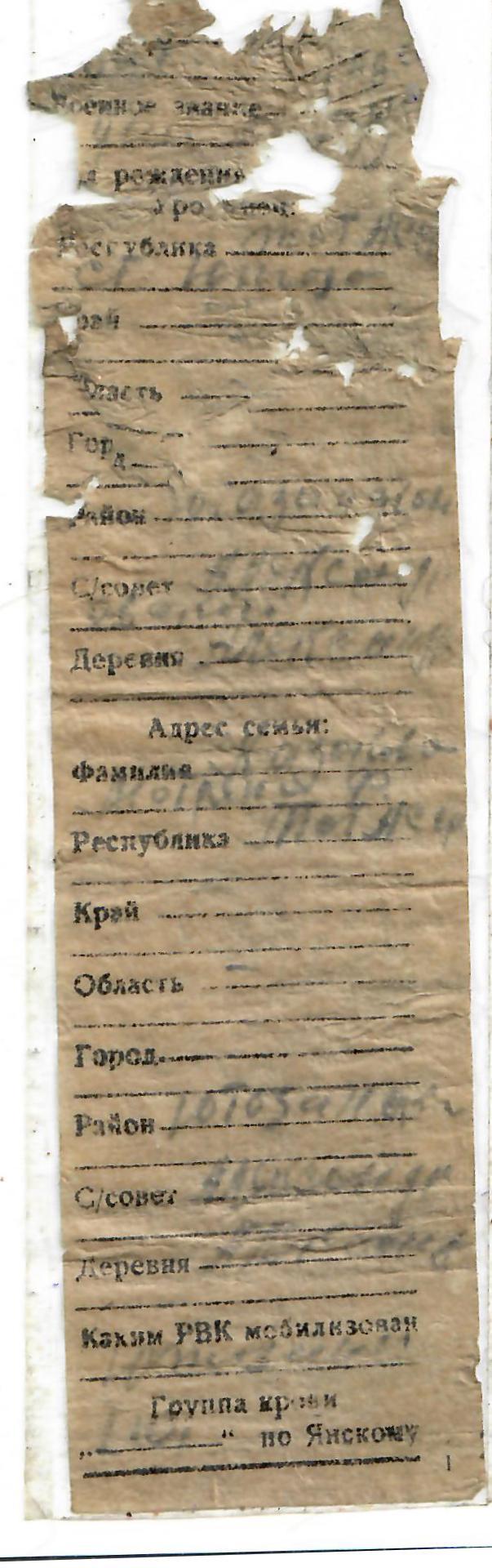 | Призван РВК | 27.06.1941 Ютазинский РВК, Татарская АССР |