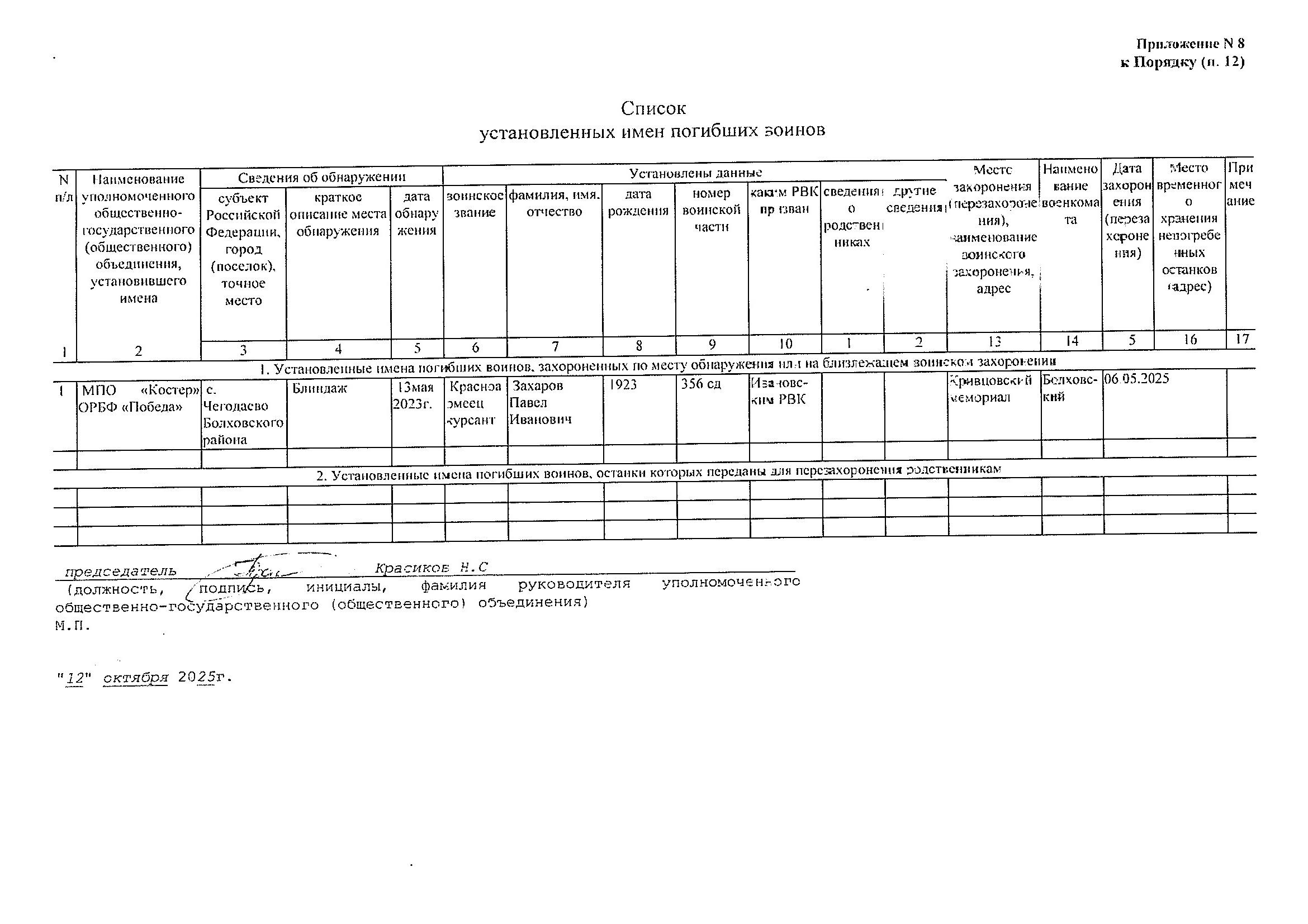 | Призван РВК | Ивановский РВК, Ивановская обл. |