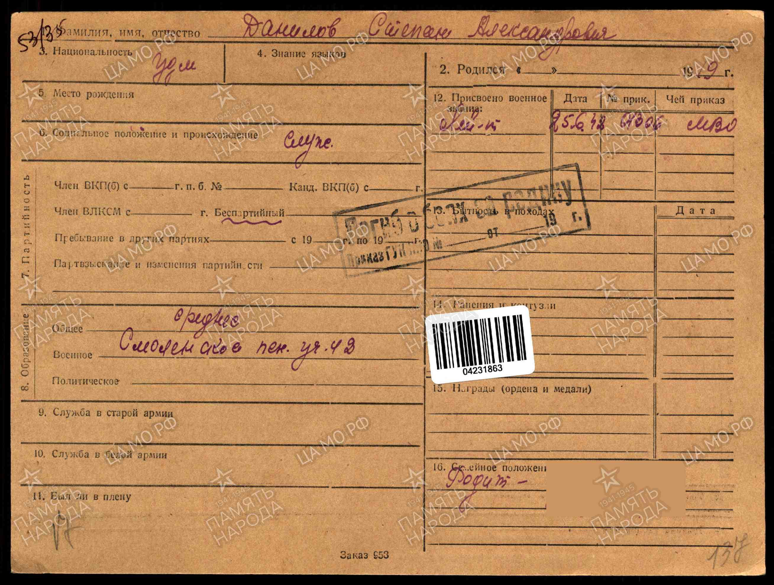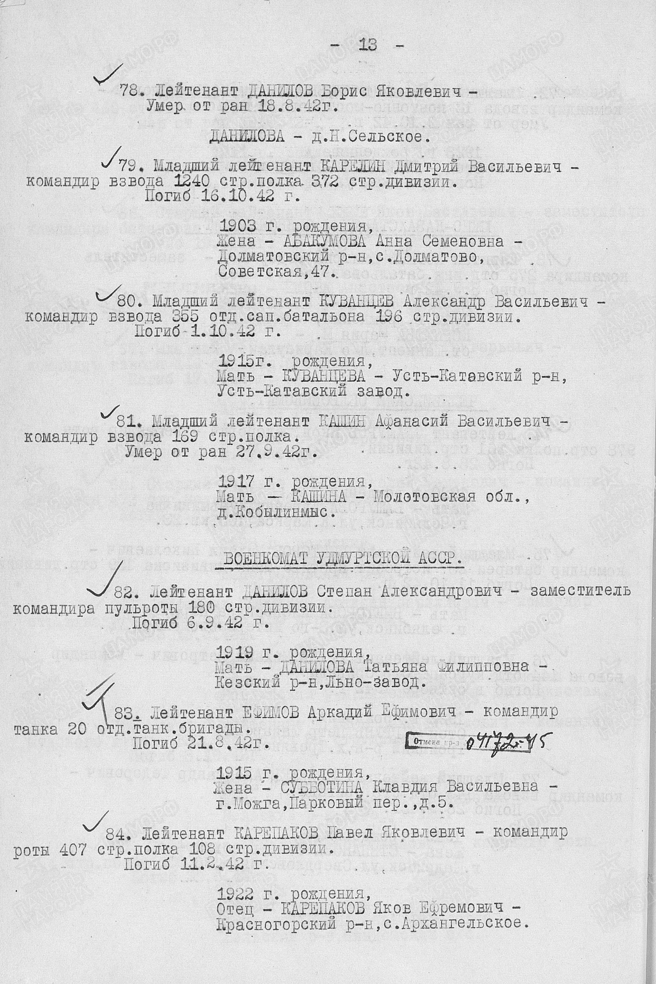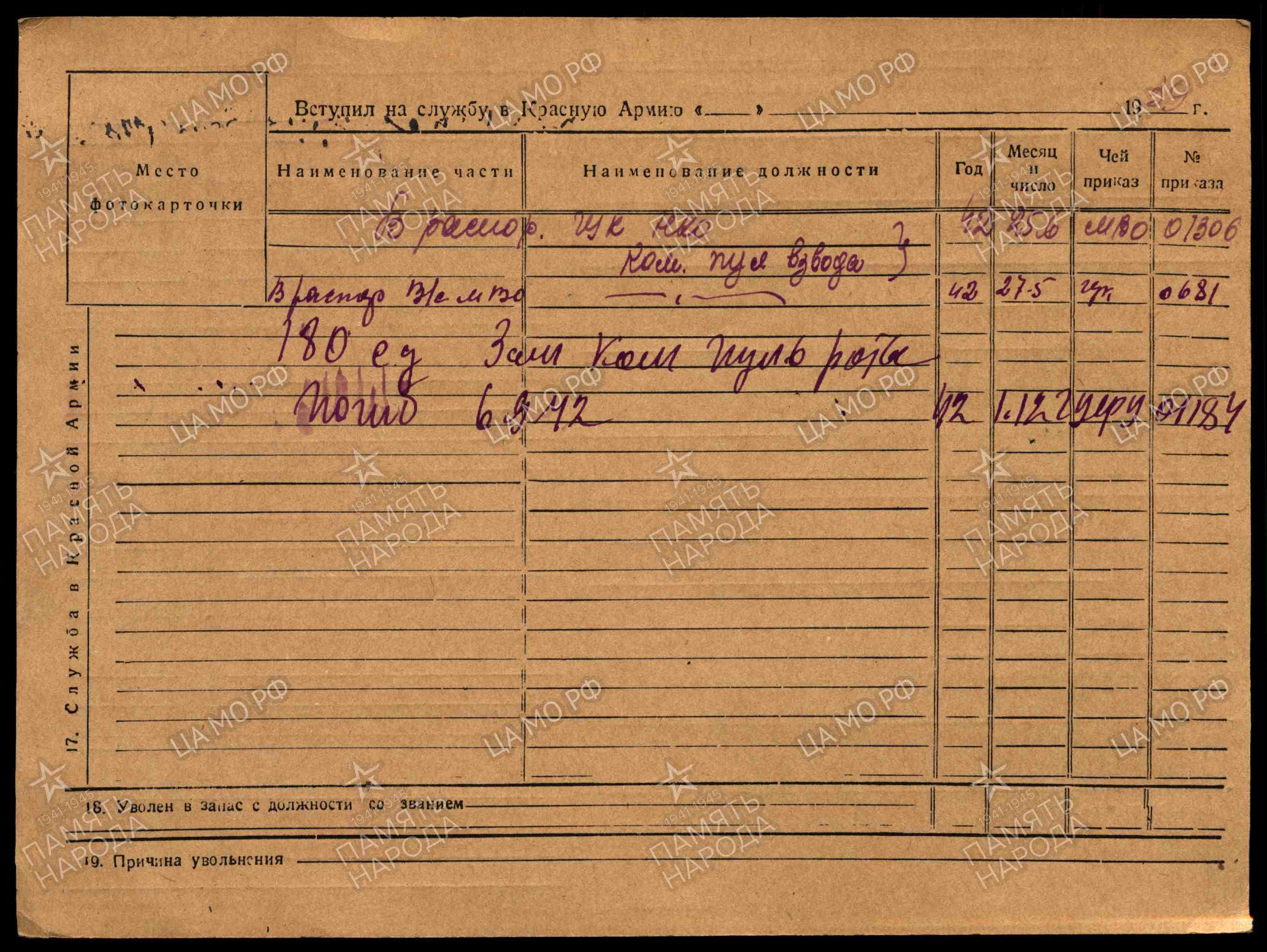 | Призван РВК | Дебесский РВК, Удмуртская АССР, 1939г. |
