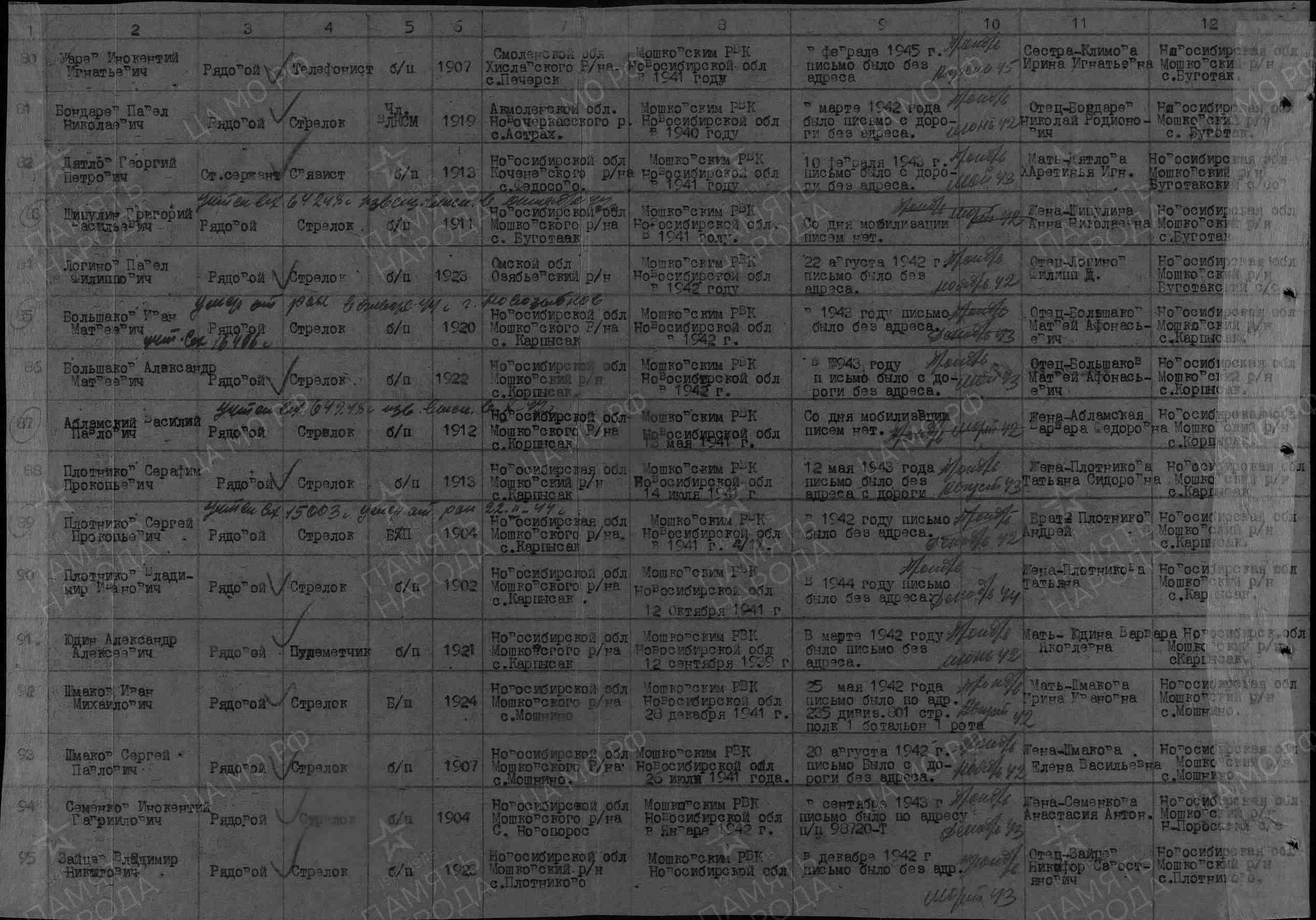 | Призван РВК | Мошковский РВК, Новосибирская обл. |