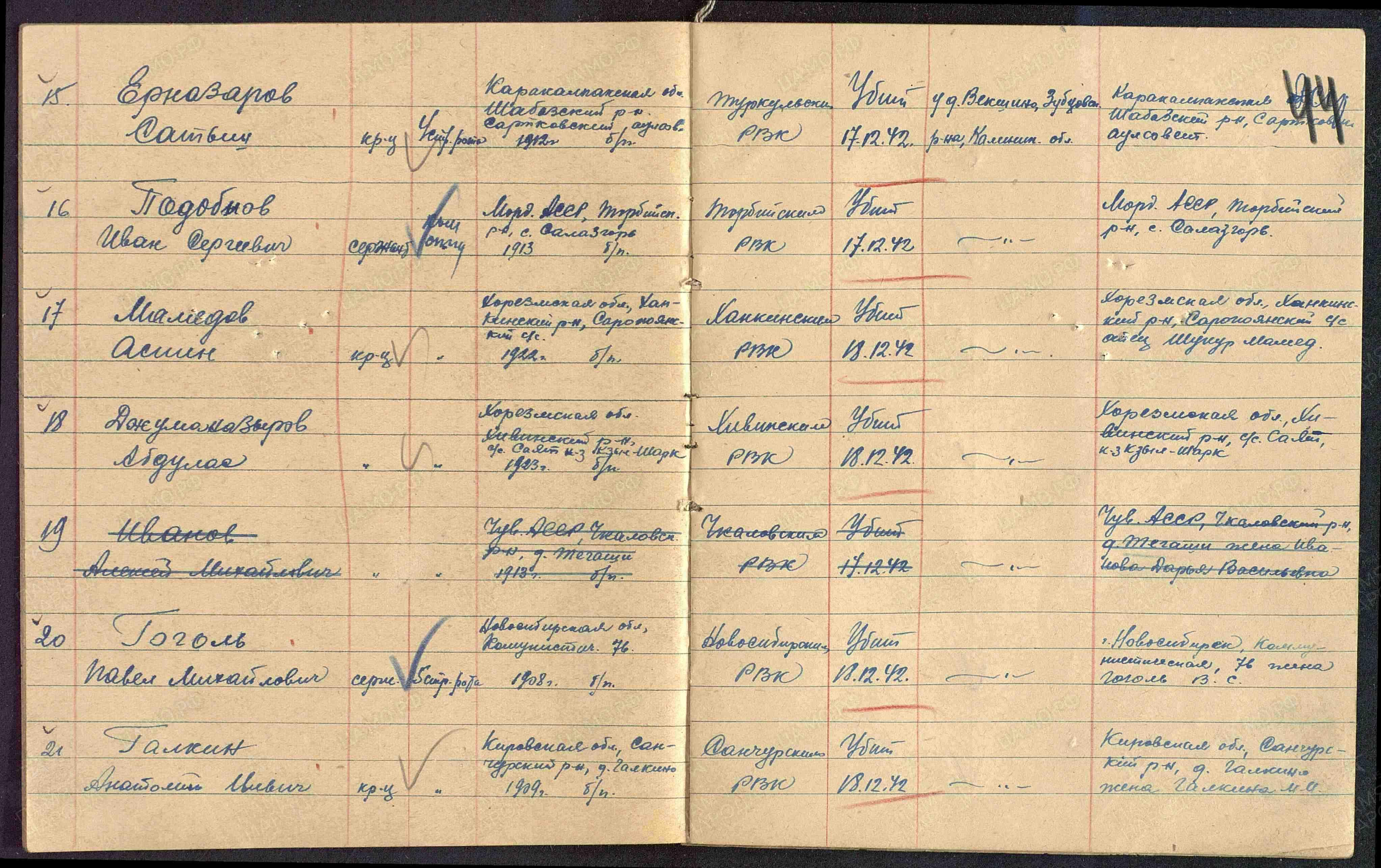 | Дата выбытия | 18.12.1942 |