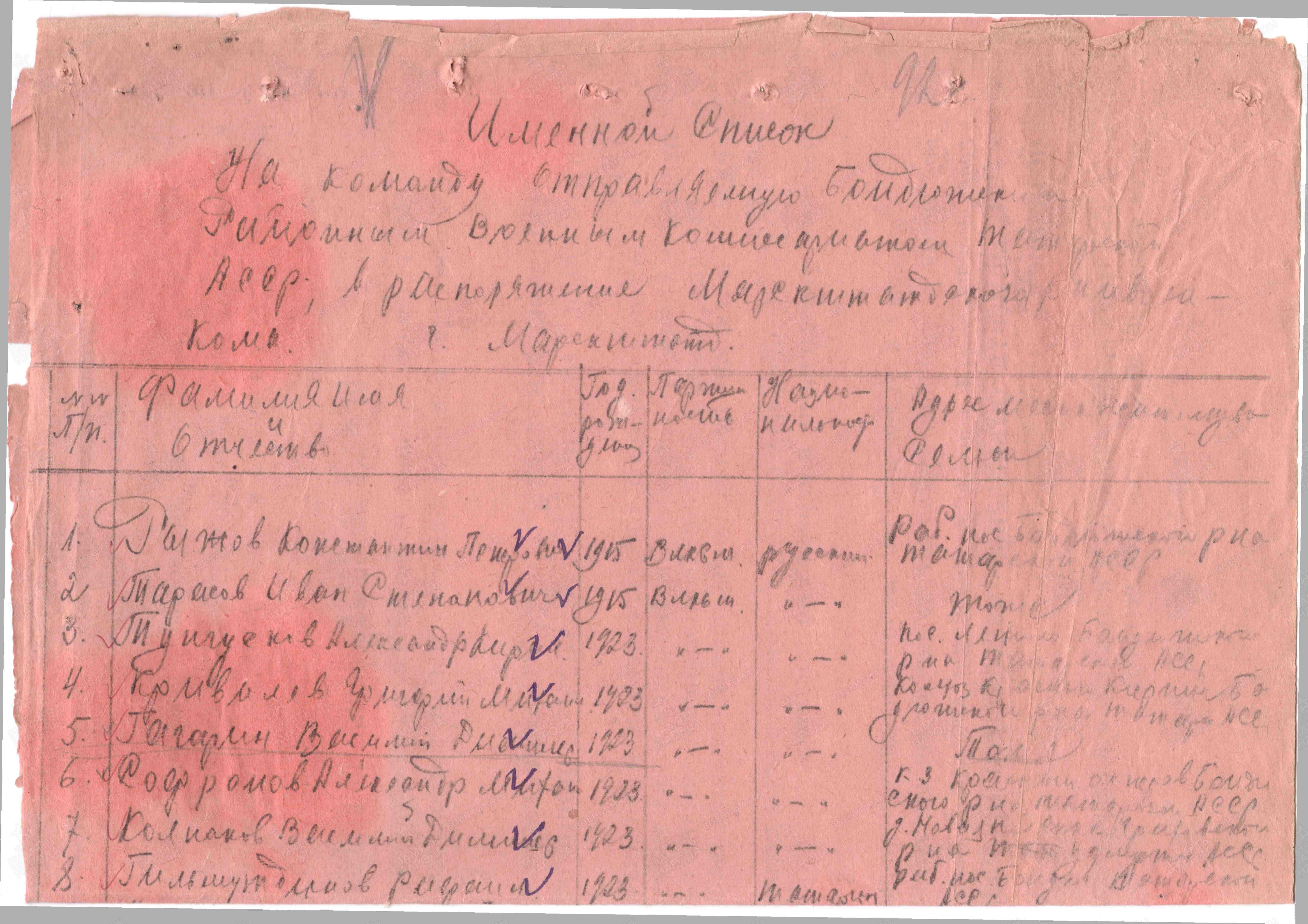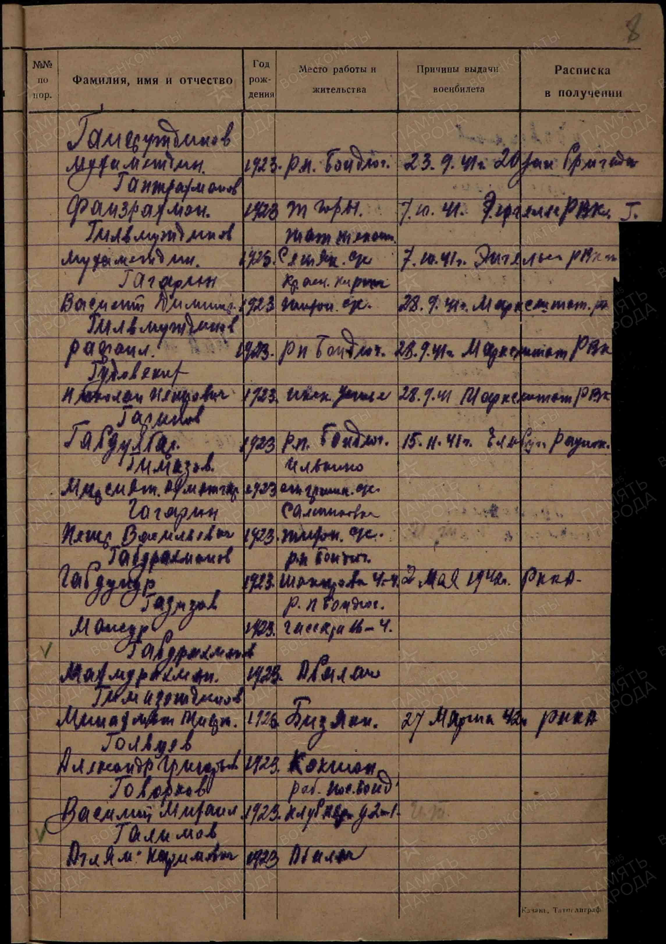 | Призван РВК | 28.09.1941 Бондюжский РВК, Татарская АССР |