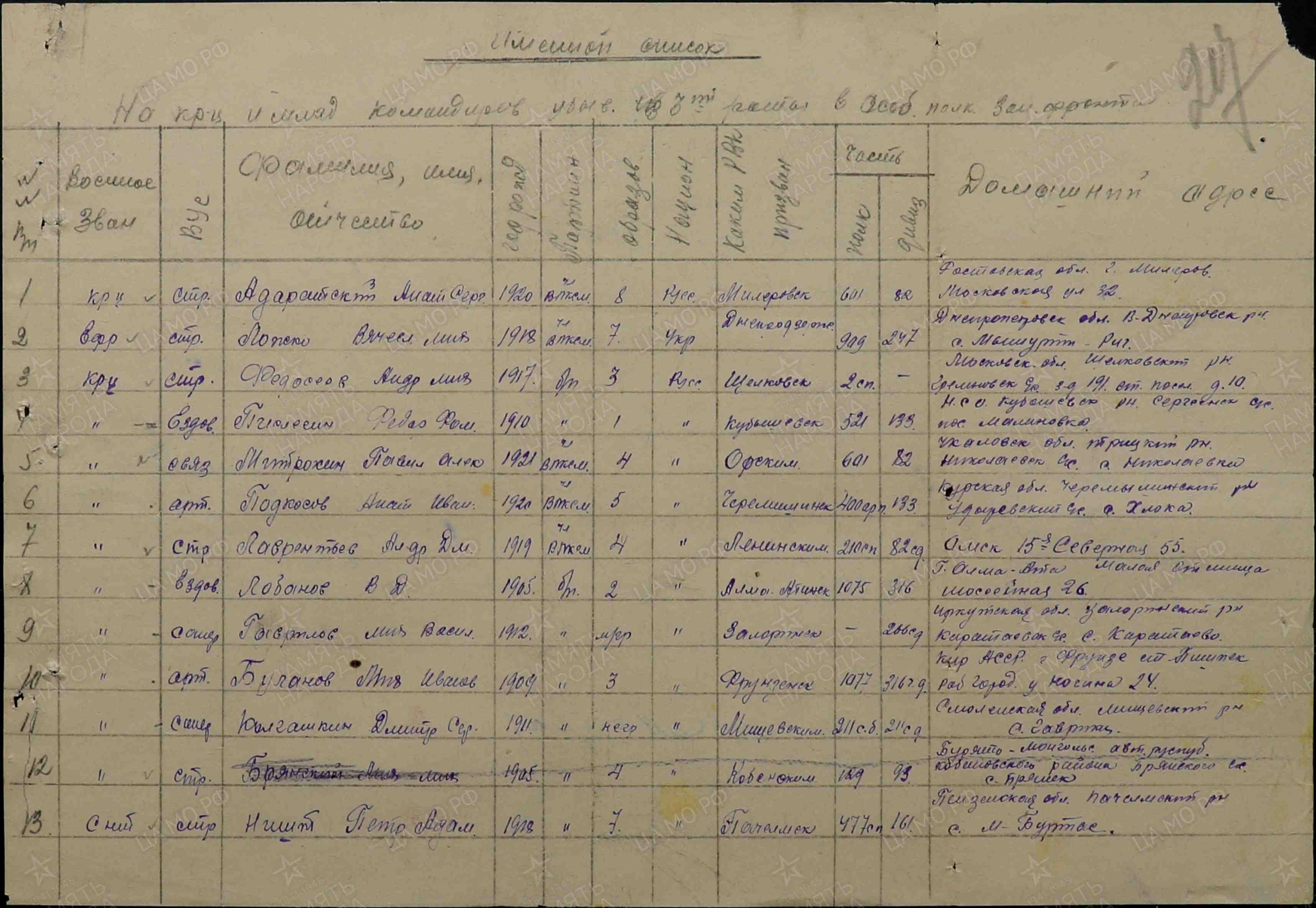 | Призван РВК | Куйбышевский РВК, Новосибирская обл. |