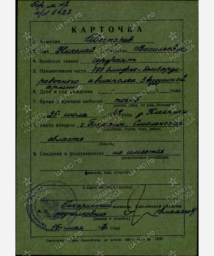 | Призван РВК | Кадровый с 1939г |