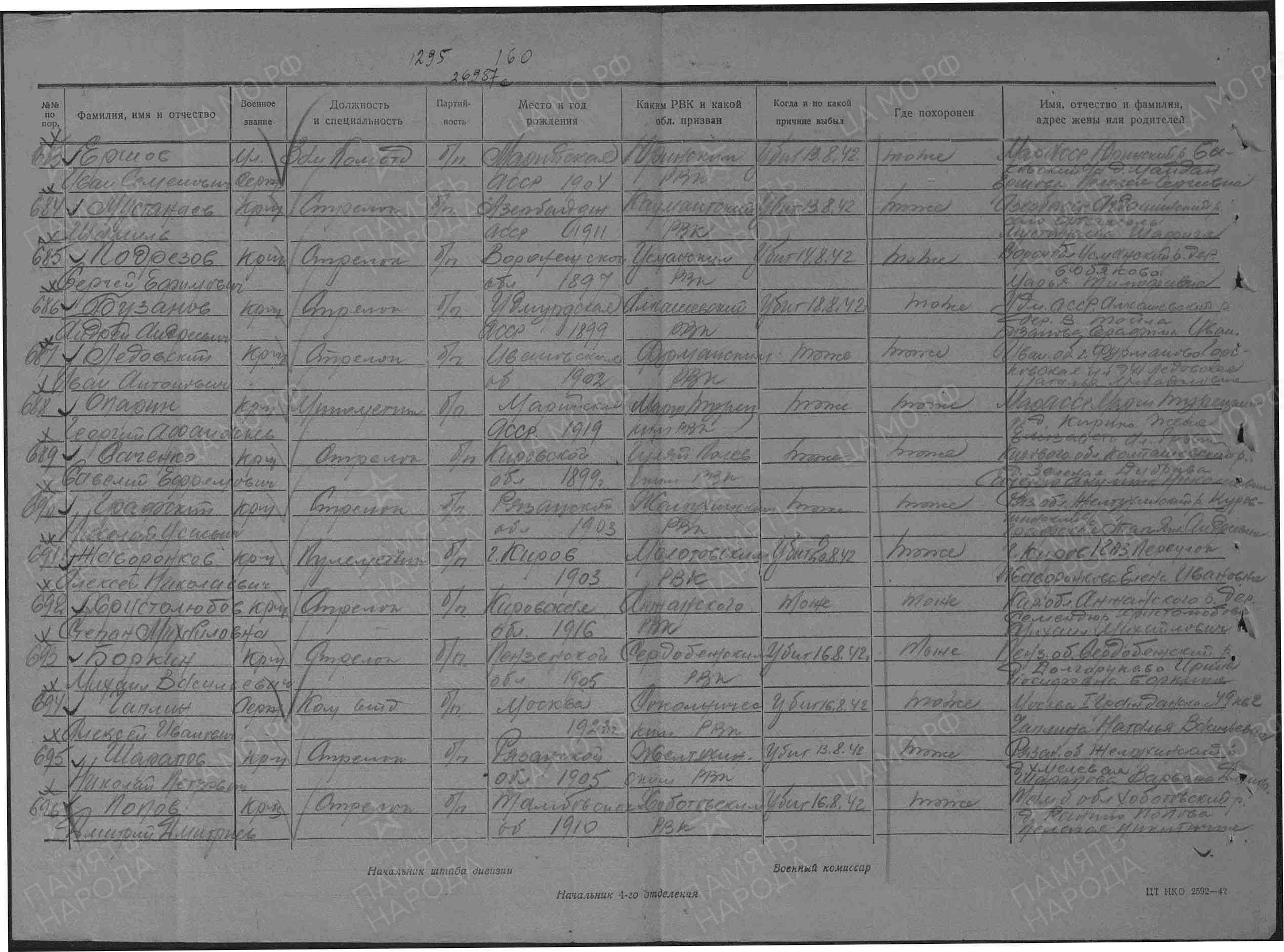 | Дата выбытия | 16.08.1942 |