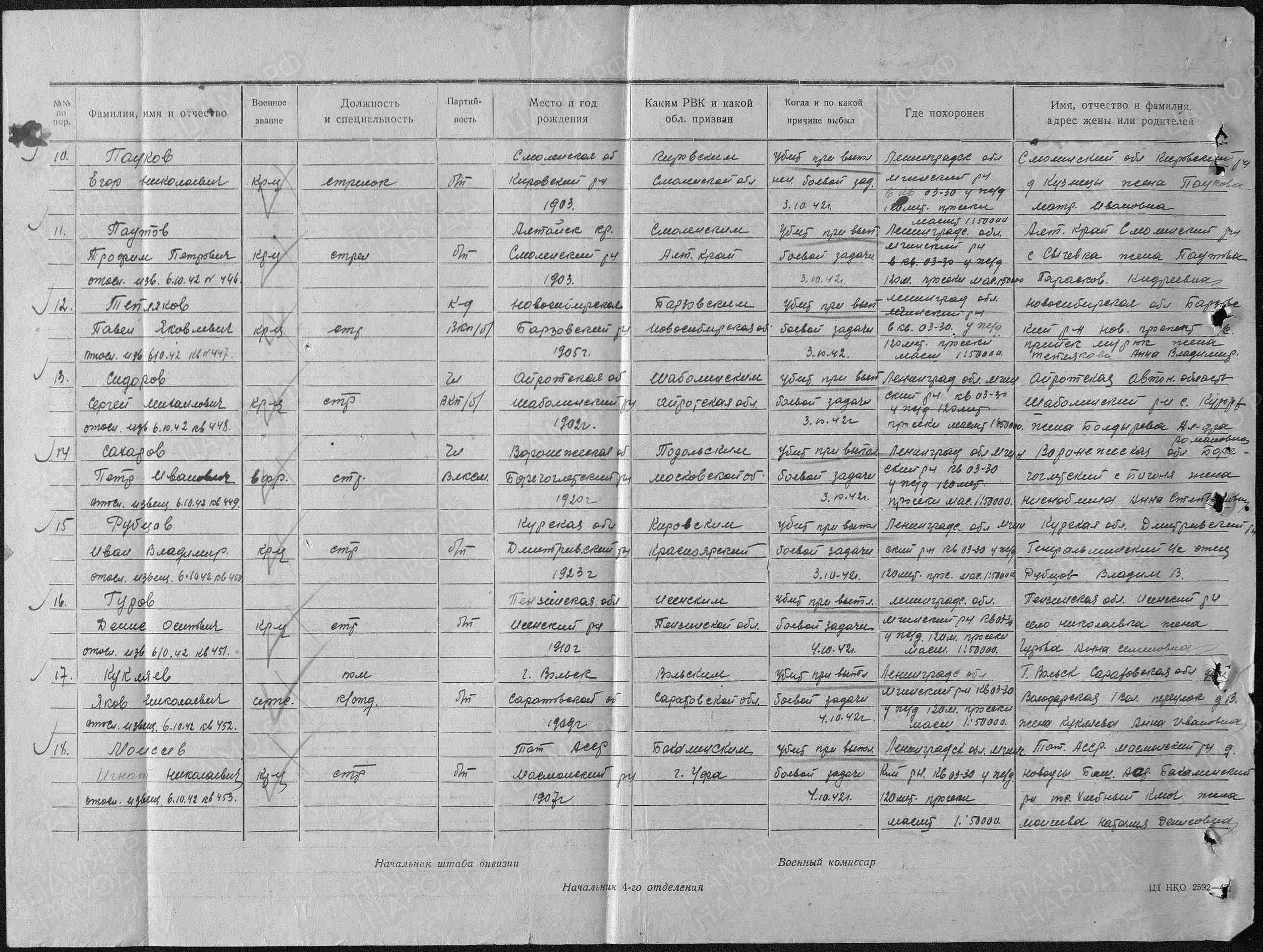| Дата выбытия | 03.10.1942 |