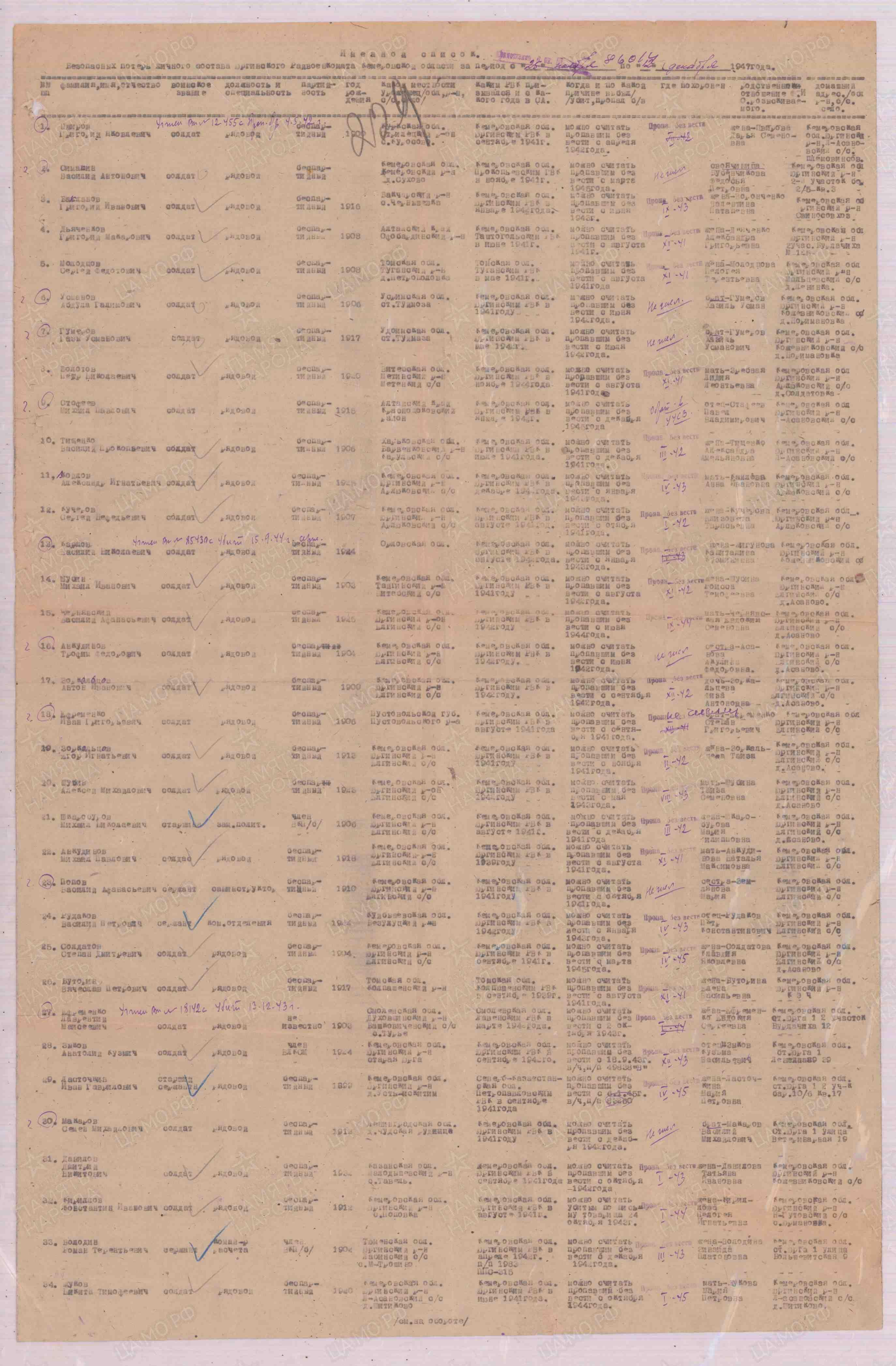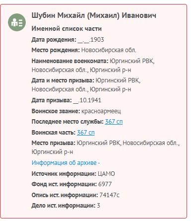 | Призван РВК | Юргинский РВК, Кемеровская обл. |