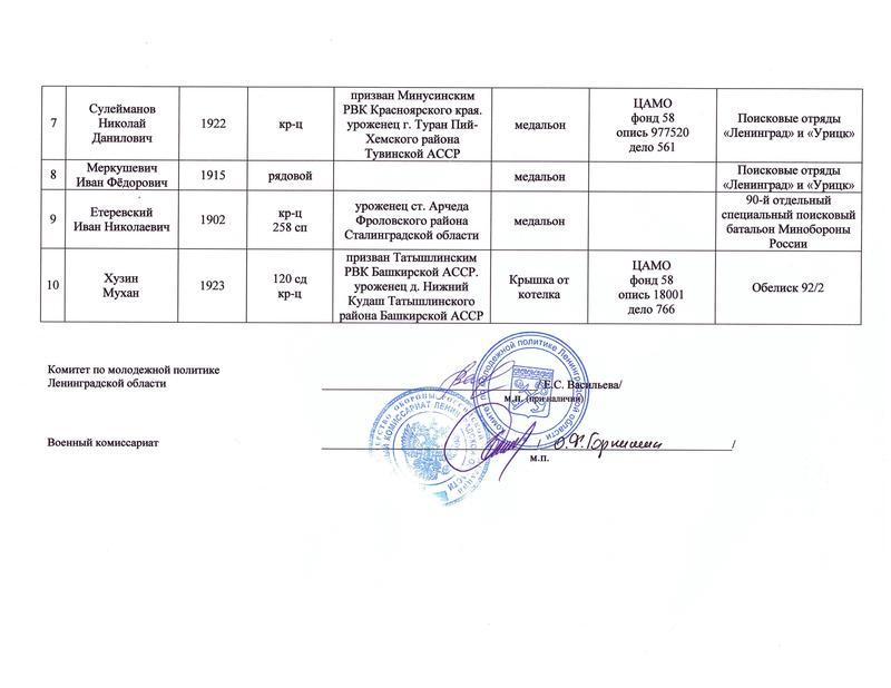 | Название захоронения | Синявинские высоты |
