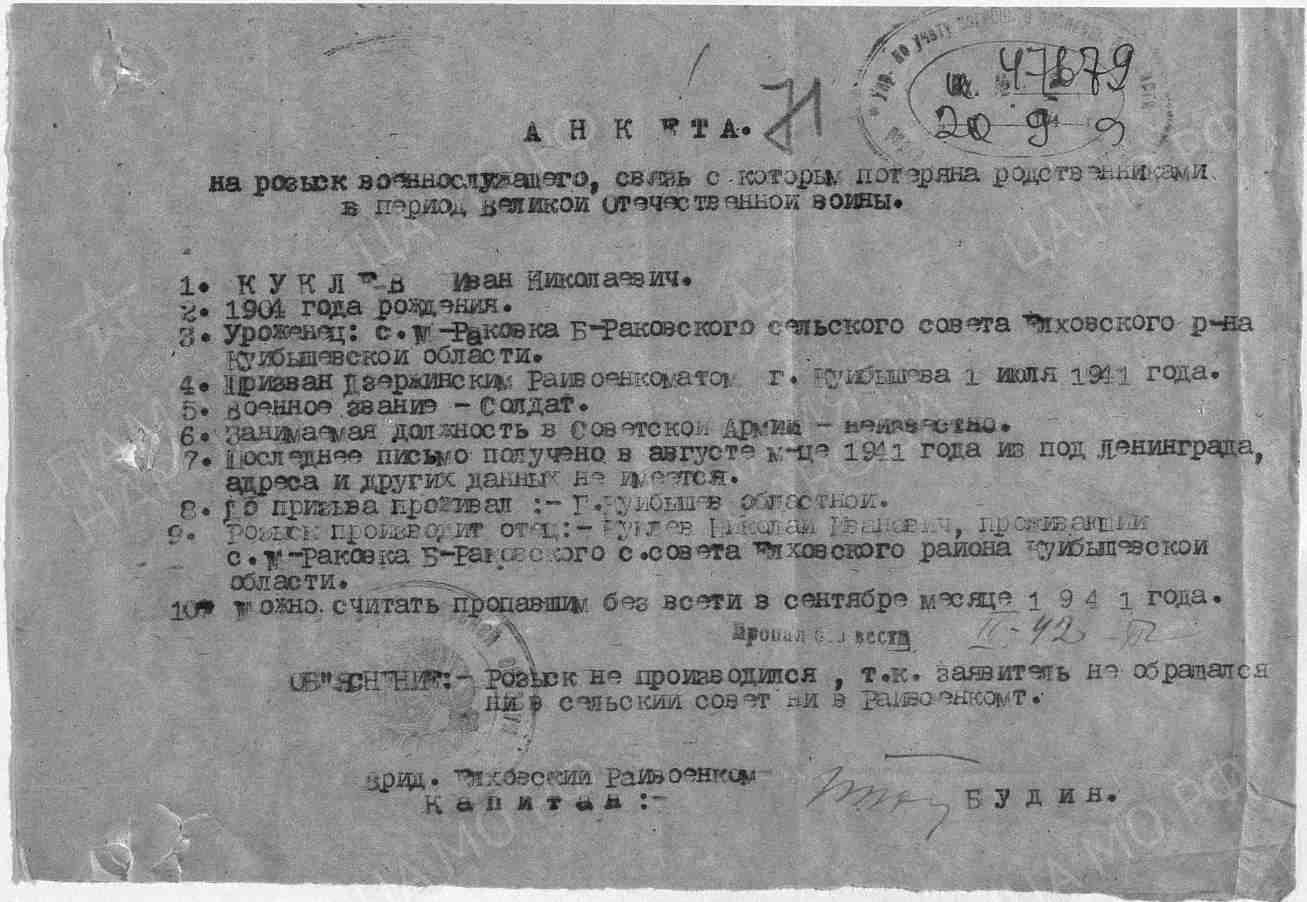 | Призван РВК | Дзержинский РВК, г. Куйбышев |