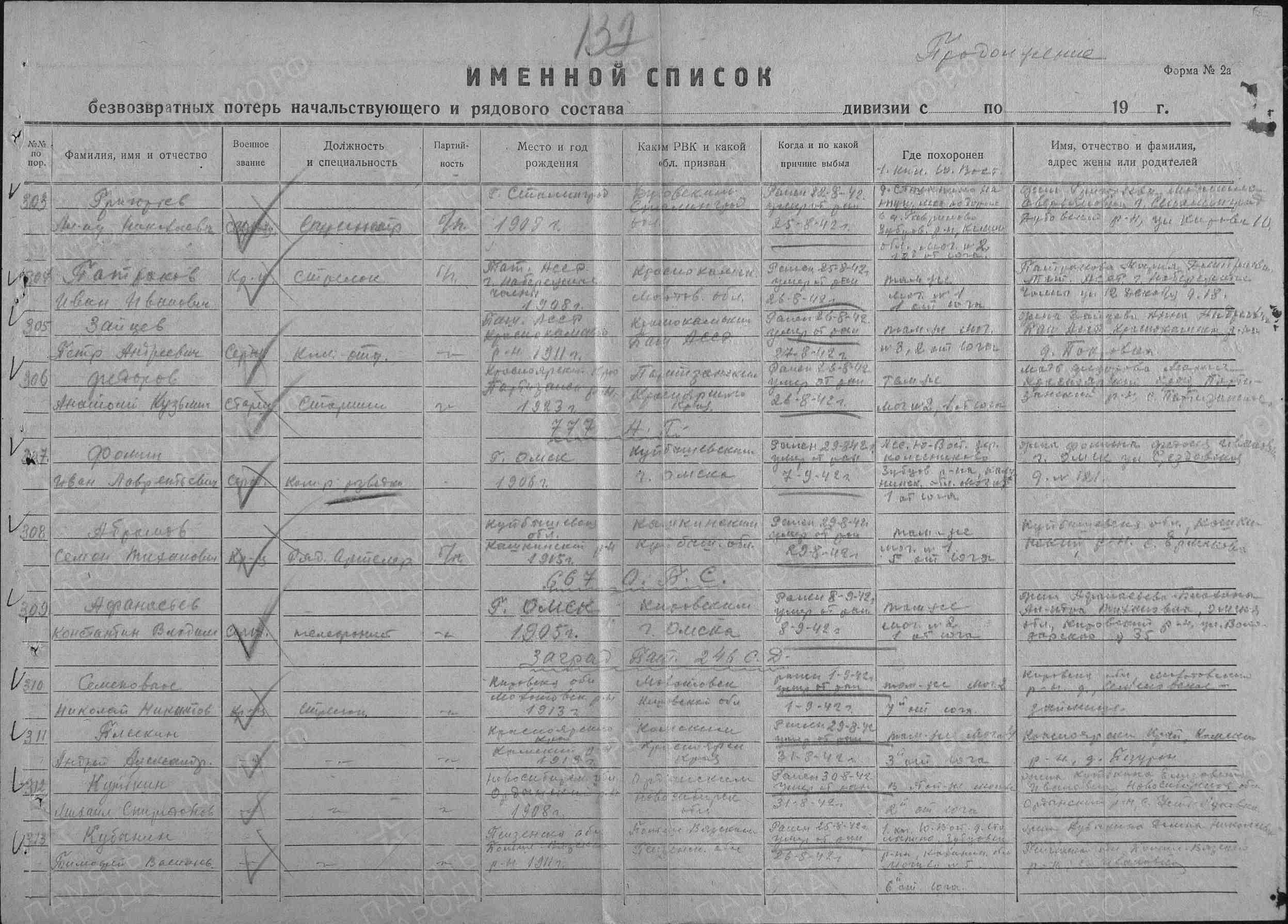 | Дата выбытия | 26.08.1942 |