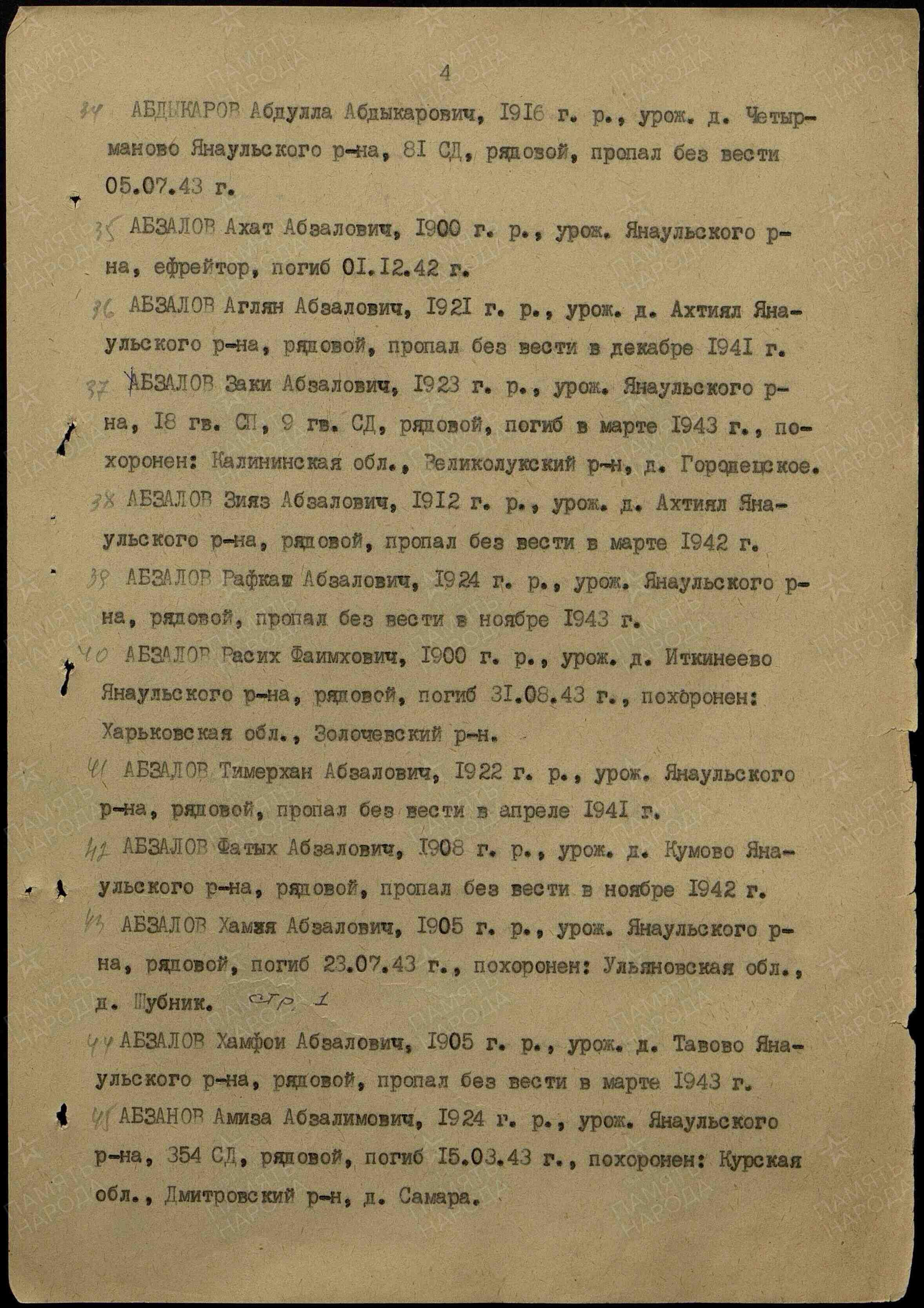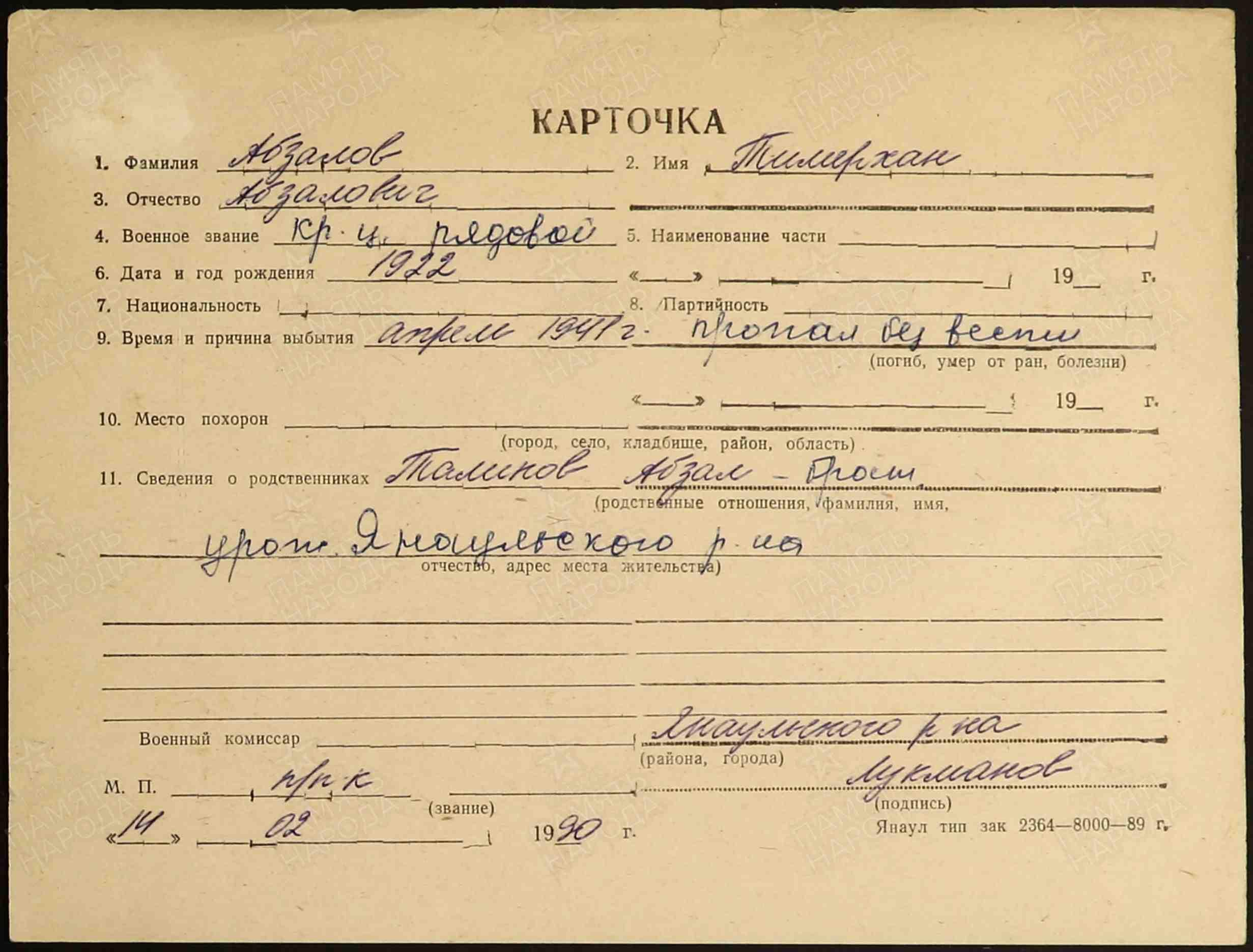 | Призван РВК | Янаульский РВК, Башкирская АССР |