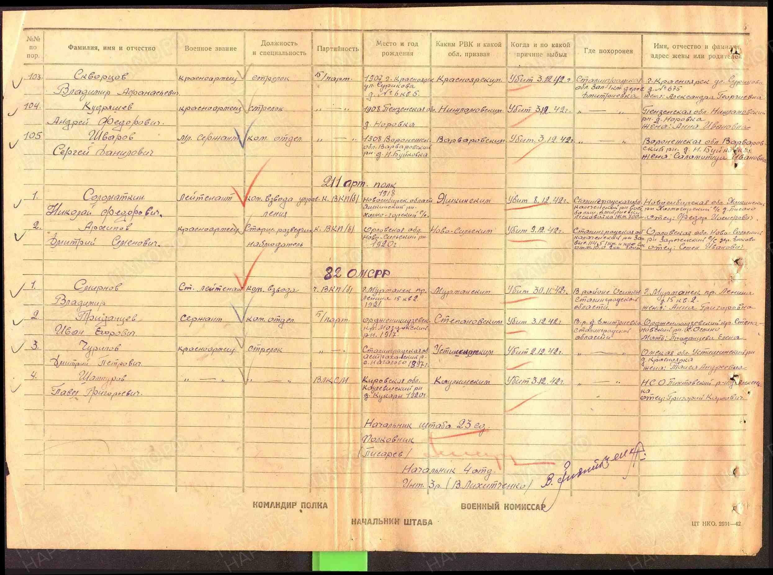 | Дата выбытия | 02.12.1942 |
