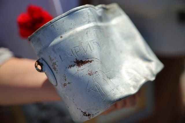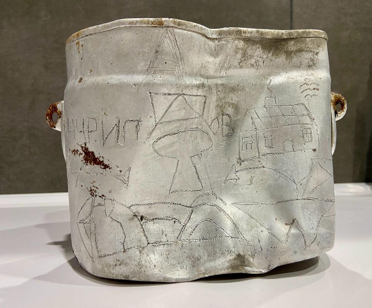 Как установлен: котелок с надписью