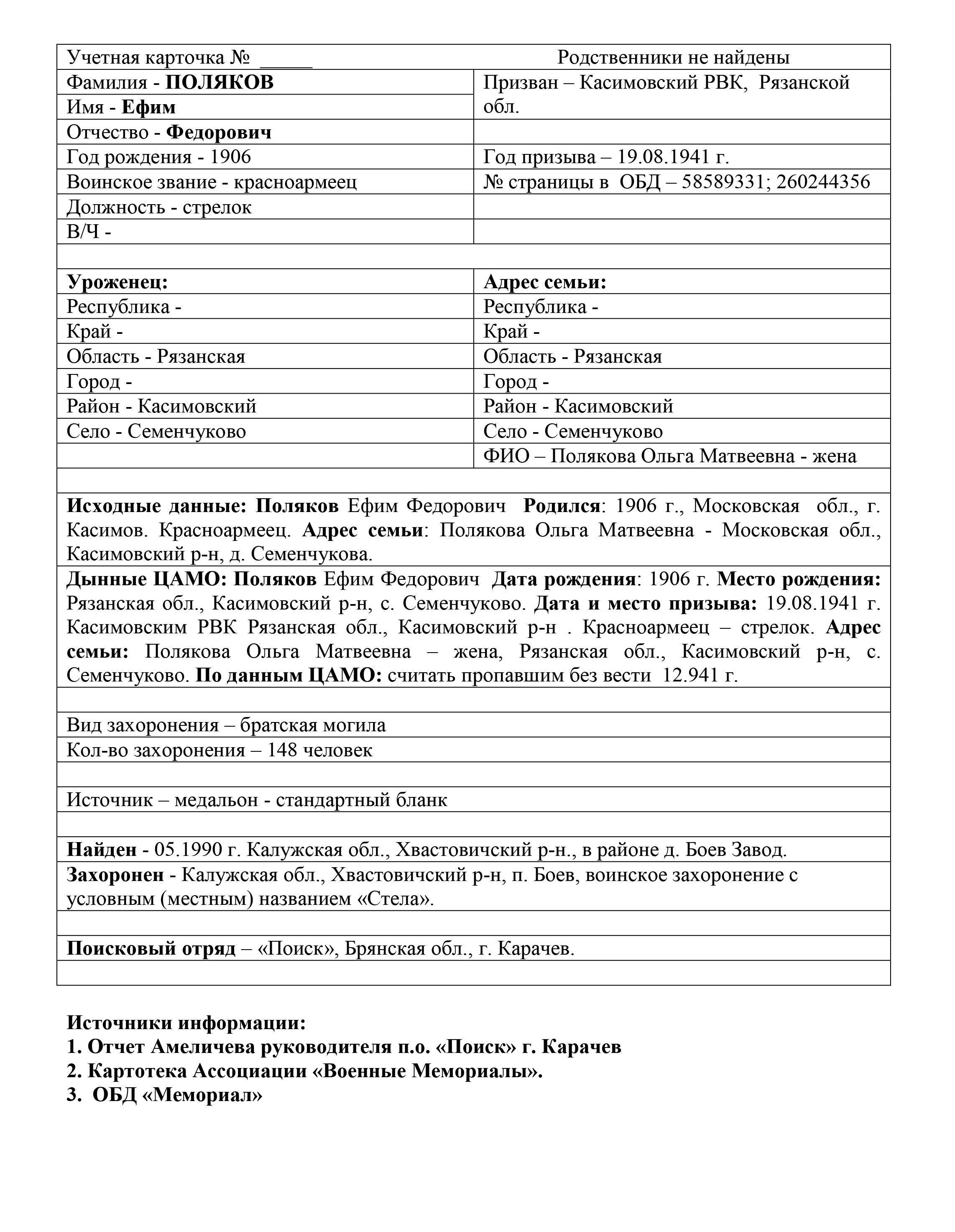 | Призван РВК | Касимовский РВК, Рязанская обл., 19.08.1941 |
