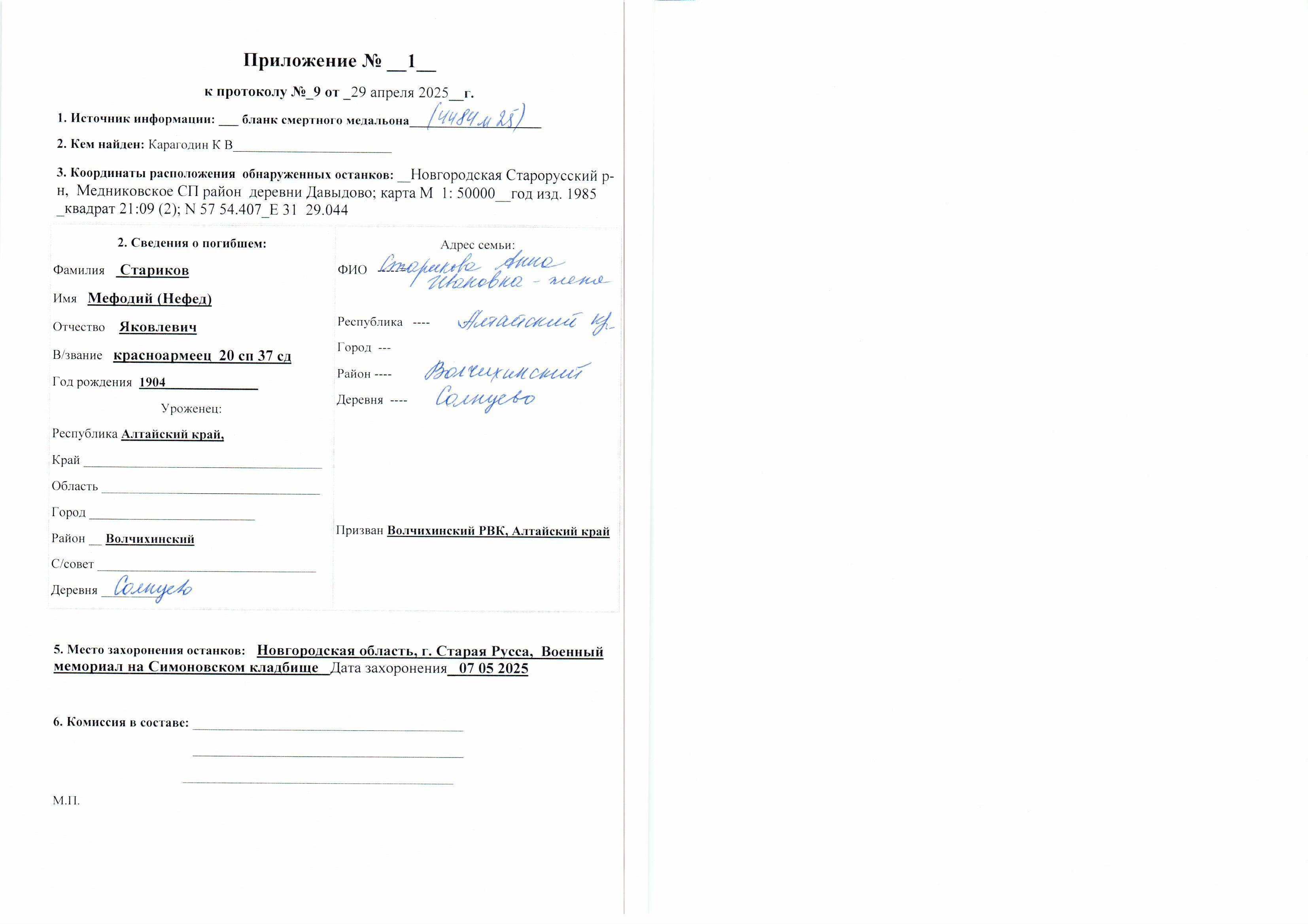 | Призван РВК | Волчихинский РВК, Алтайский край, 08.1941 |