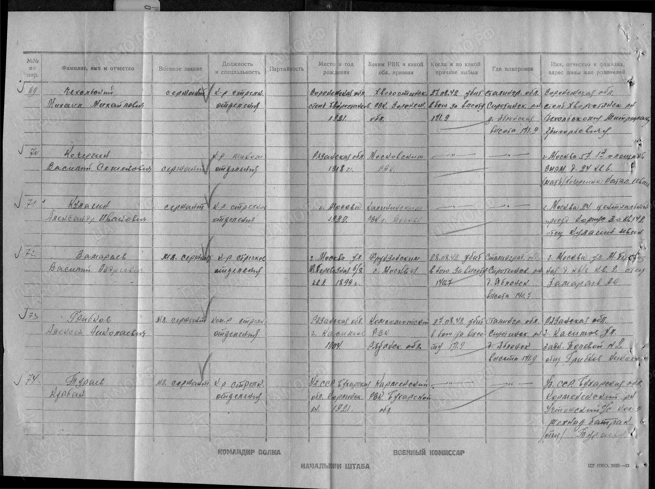 | Дата выбытия | 27.08.1942 |