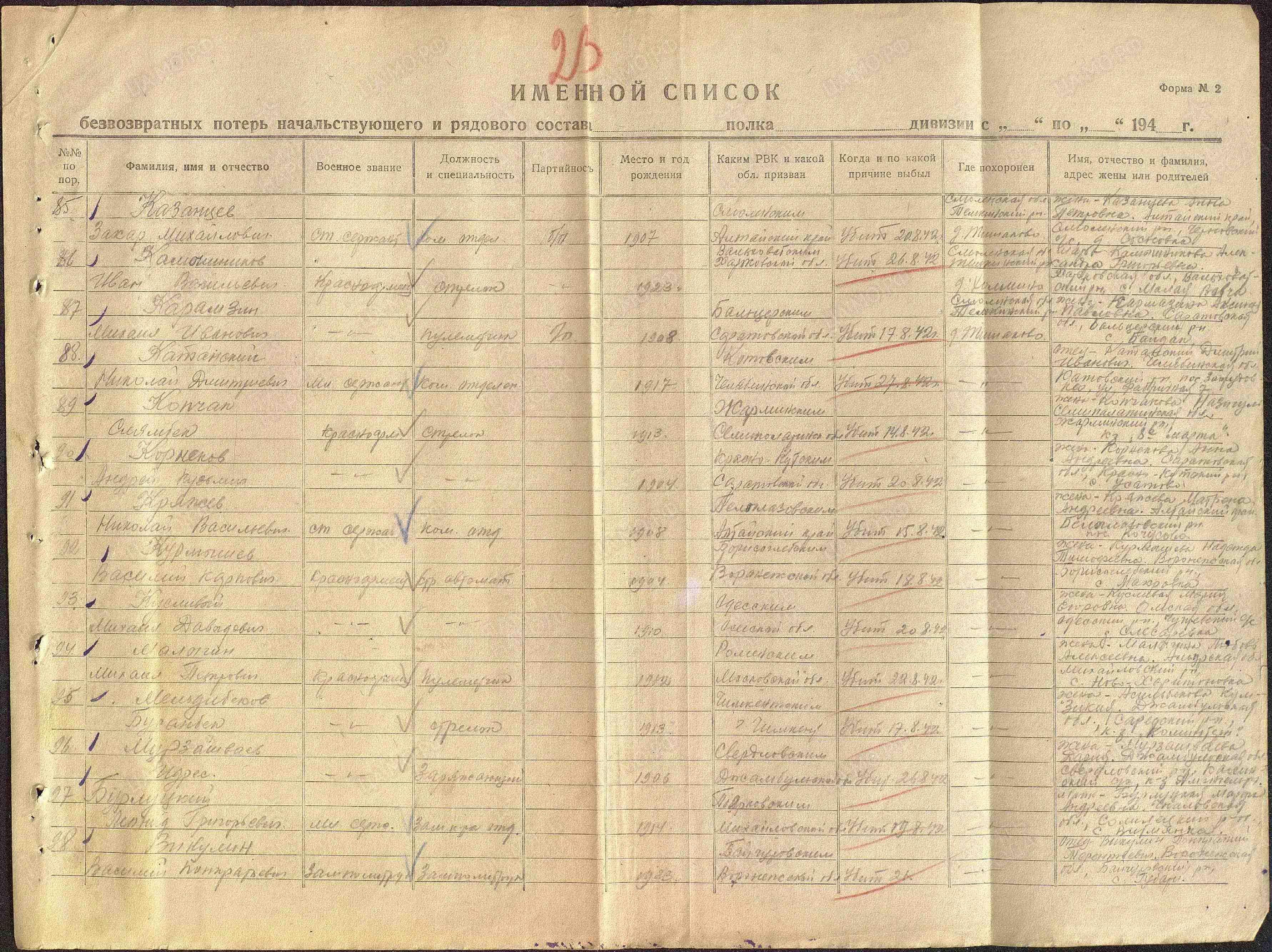 | Дата выбытия | 21.08.1942 |