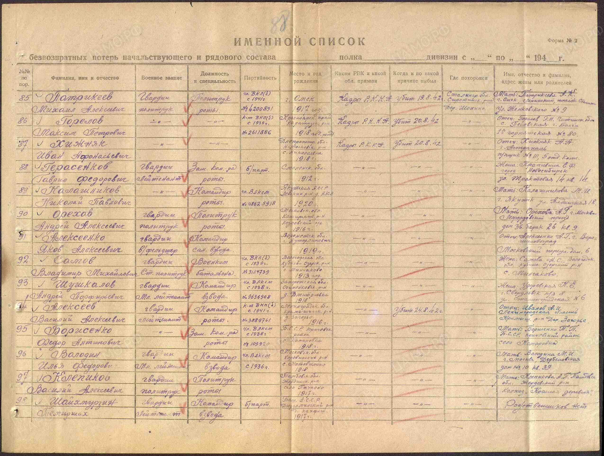 | Призван РВК | кадровый |