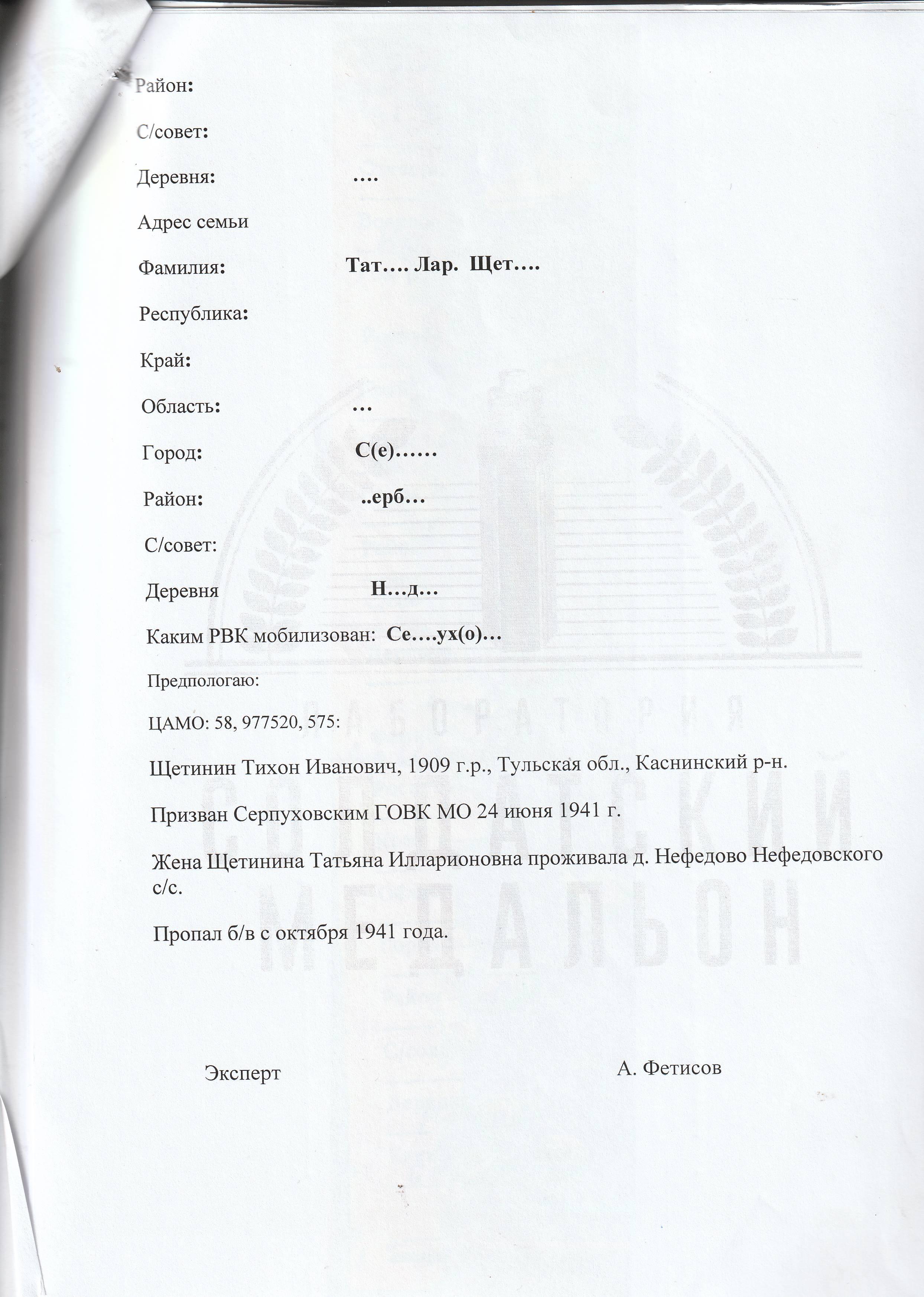 | Призван РВК | Серпуховский ГОВК, 24.06.1941 |