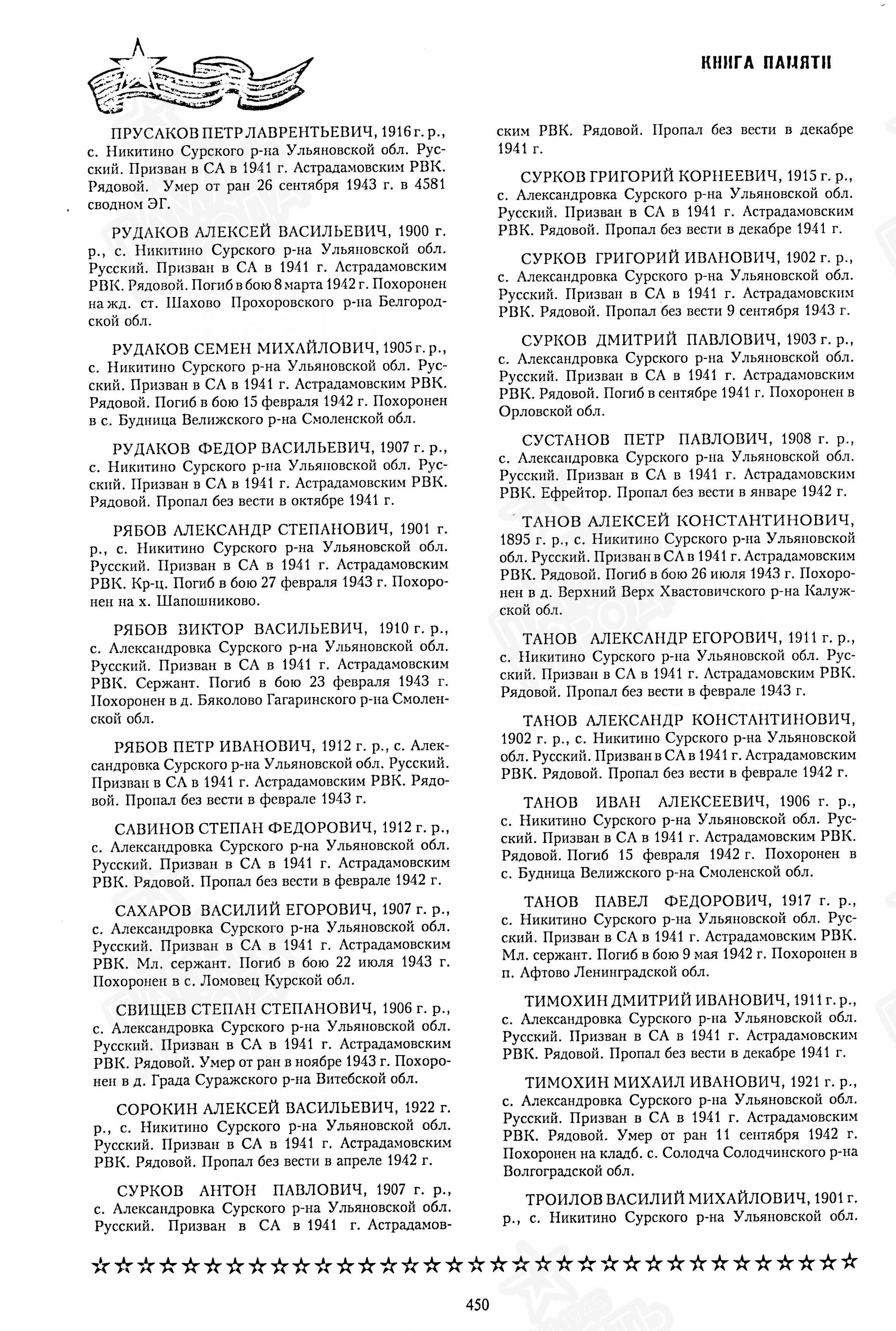 | Населенный пункт | с.Александровка (ныне-в Сурском р-не Ульяновской) |
