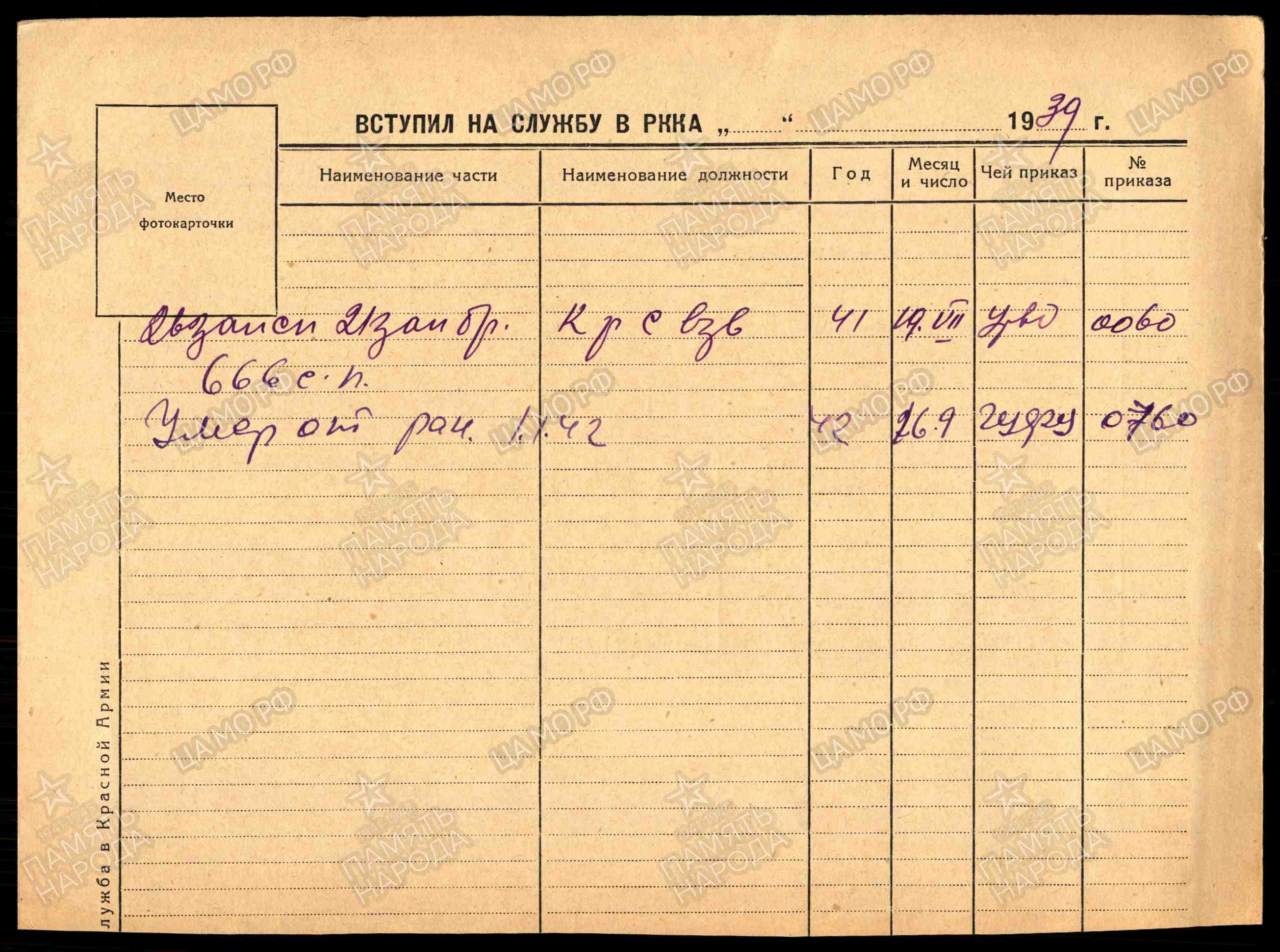 | Призван РВК | Ждановским РВК Башкирской АССР в 1939 г. |