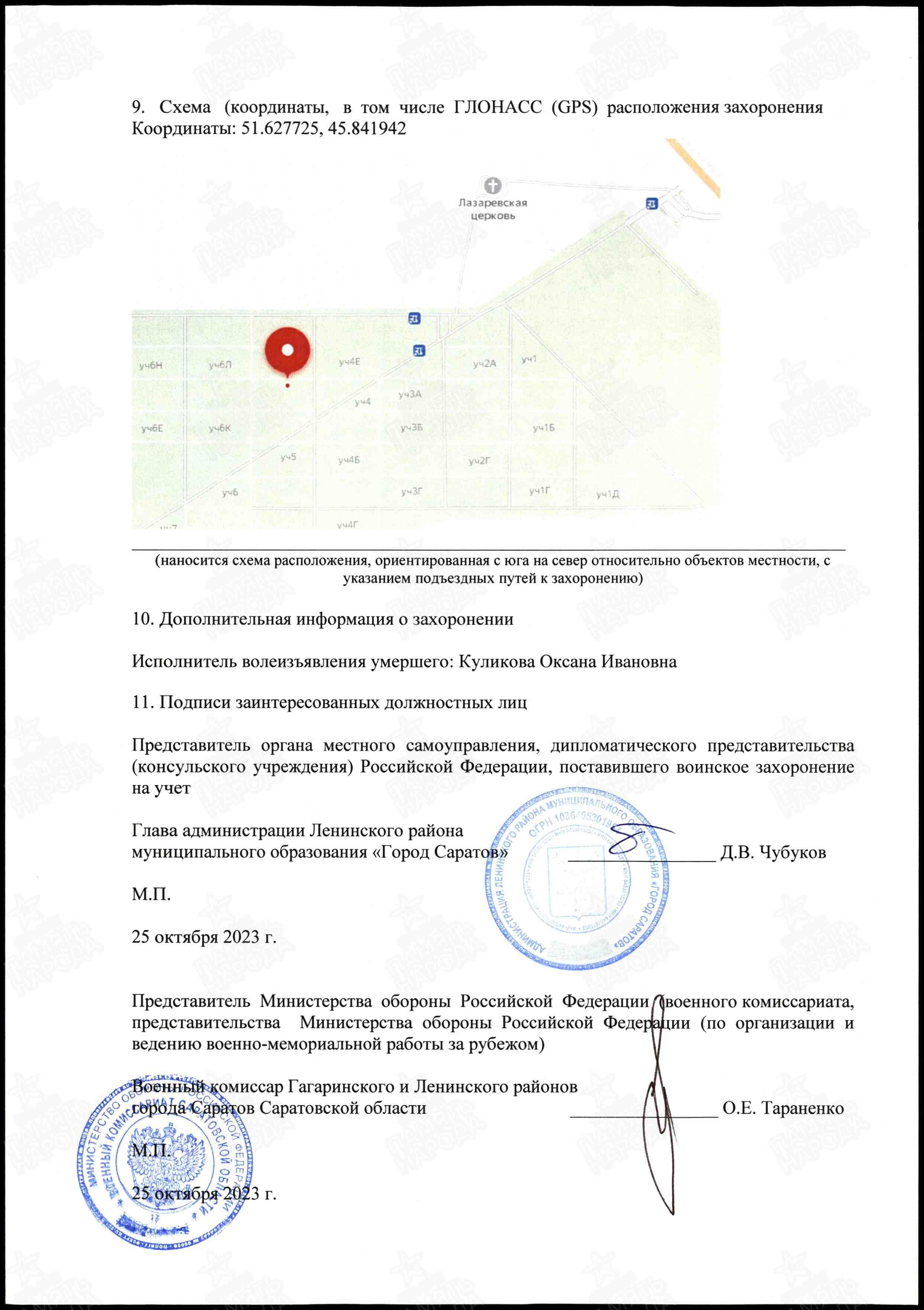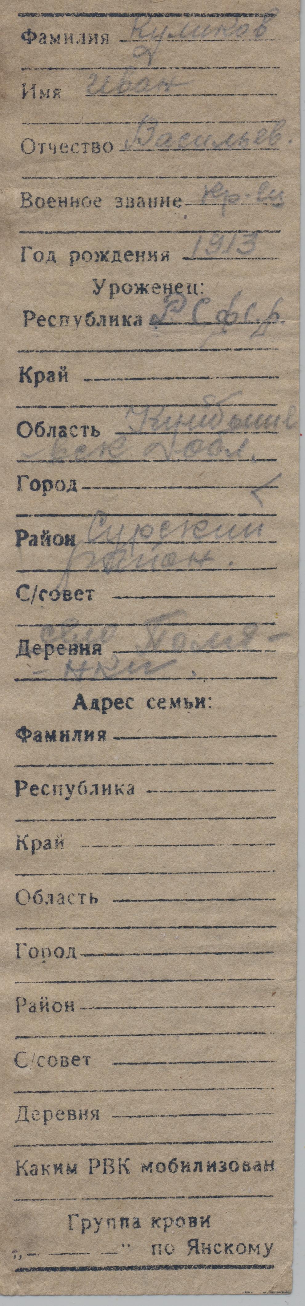| Призван РВК | Саратовский ГВК, г.Саратов, 05.1941 |