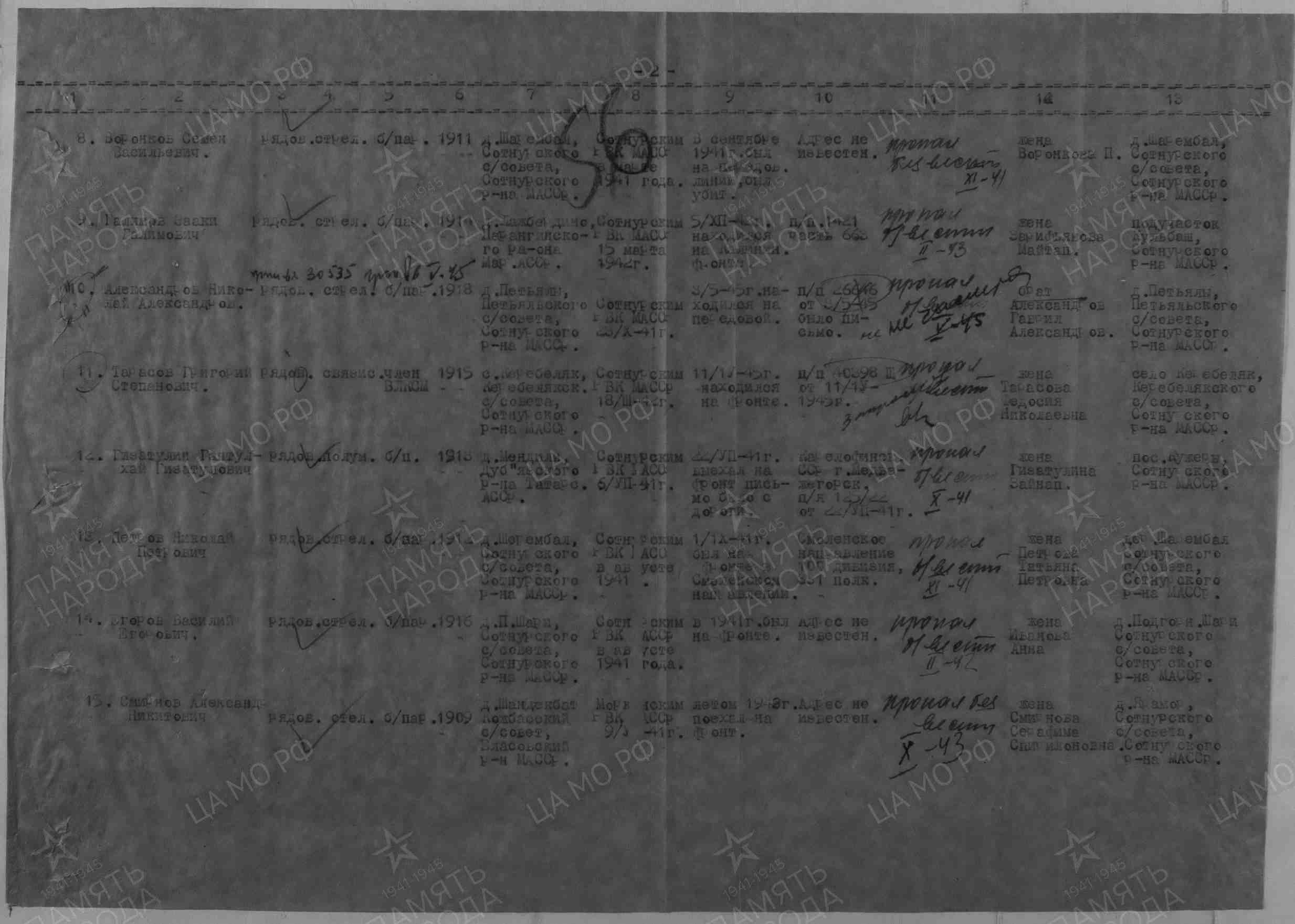 Призван РВК | 08.1941 Сотнурский РВК, Марийская АССР |