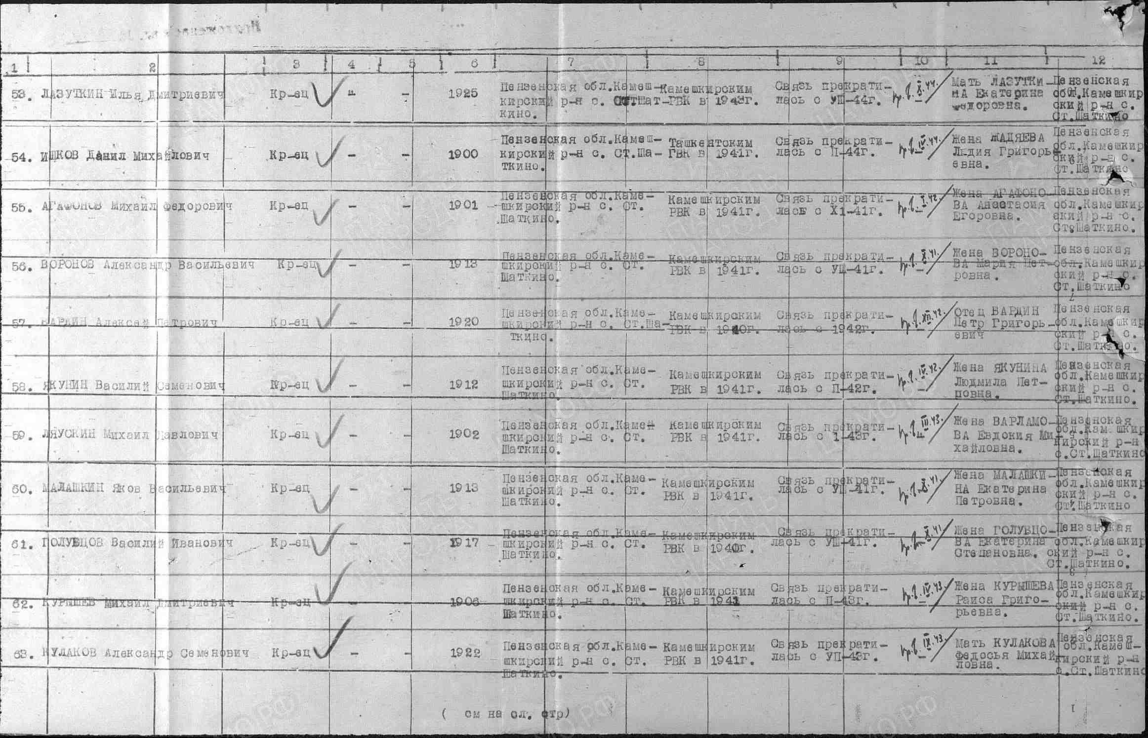 Призван РВК | Камешкирский РВК, Пензенская обл., 1941 г. |
