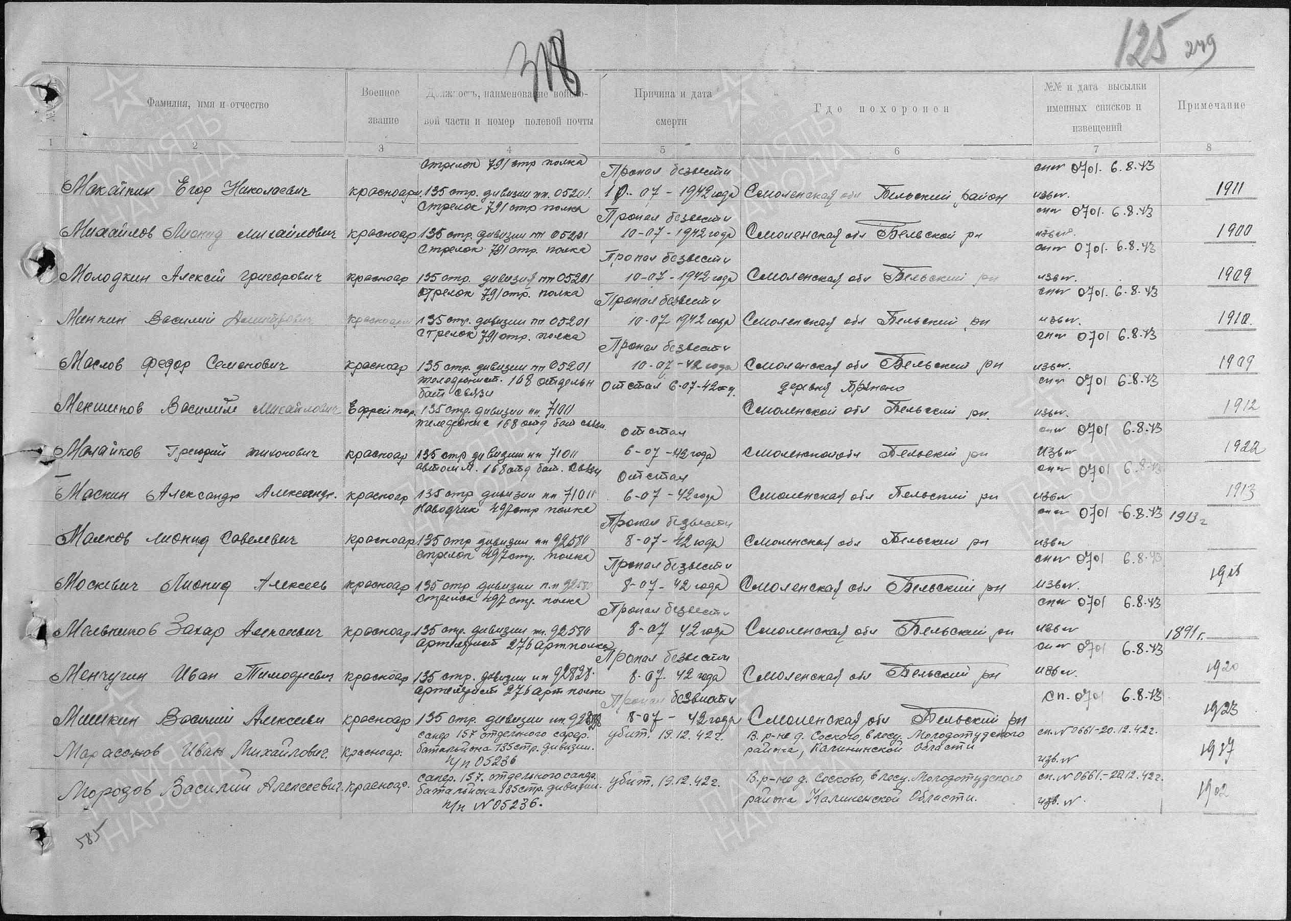 | Призван РВК | Нерехтский РВК, Ярославская обл. |