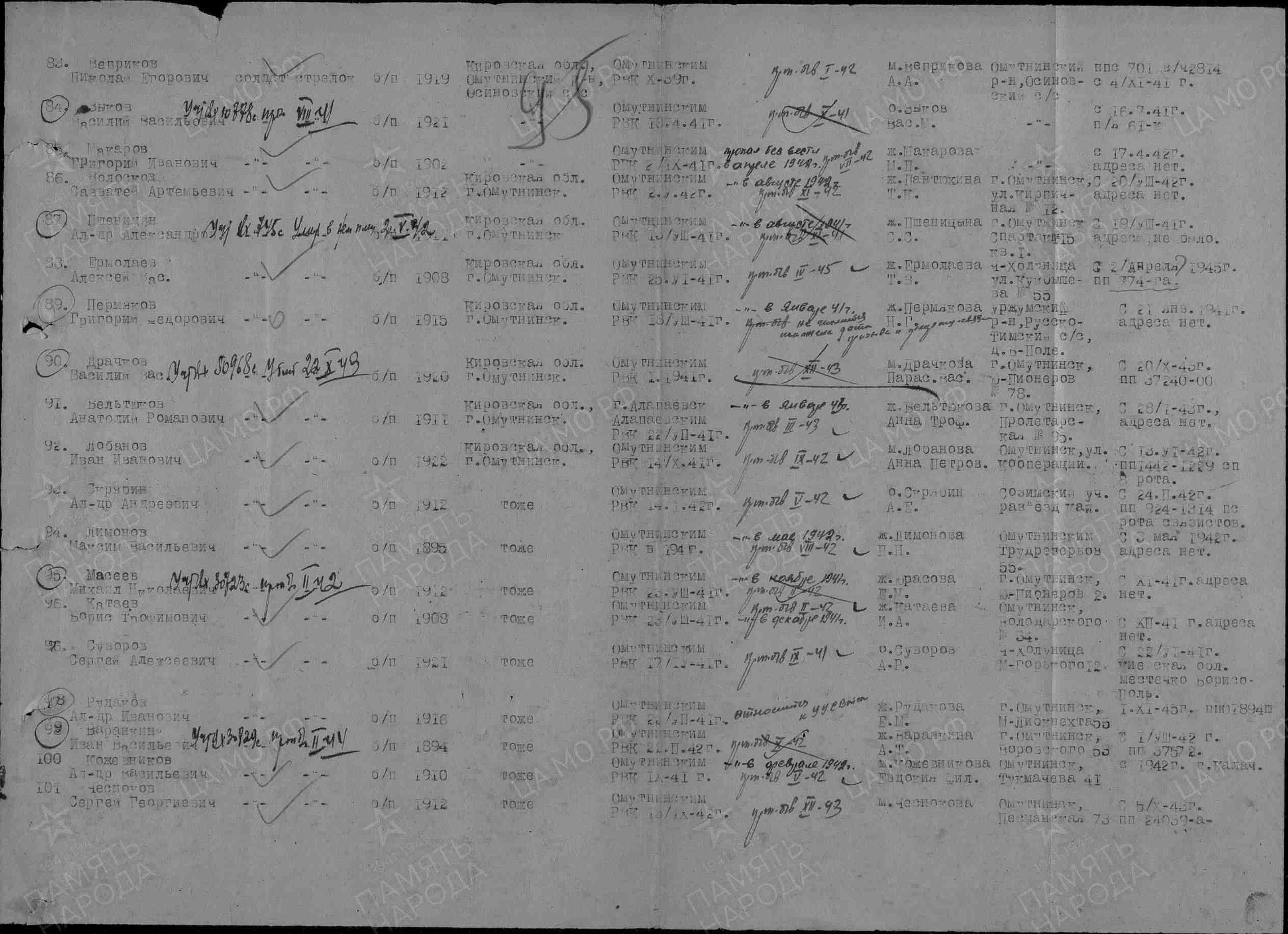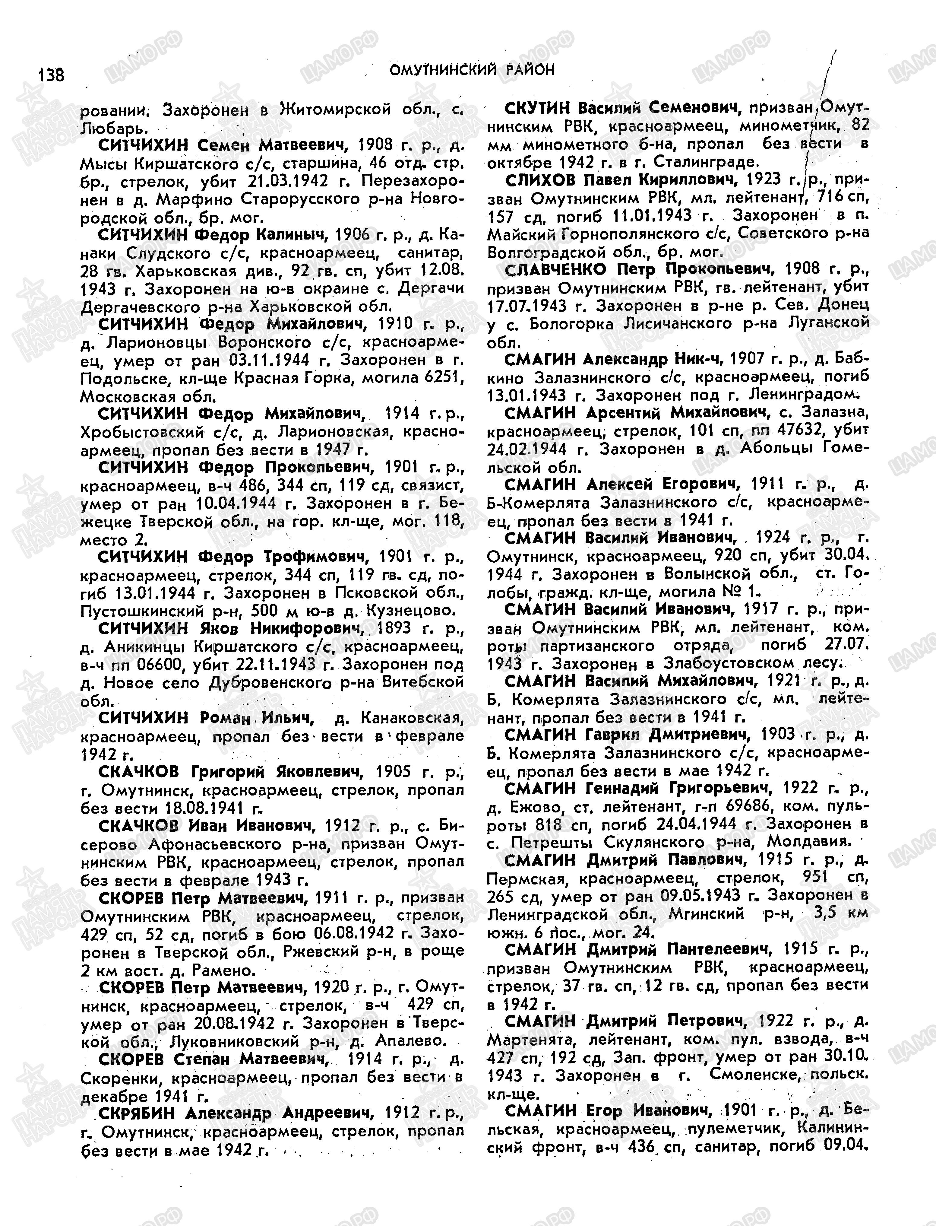 | Призван РВК | Омутинский РВК, Омская обл., 14.01.1942 |