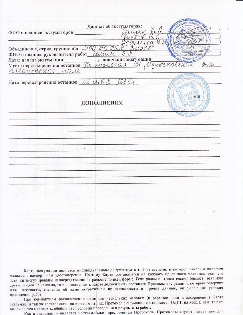 | Название захоронения | Ивановское поле |