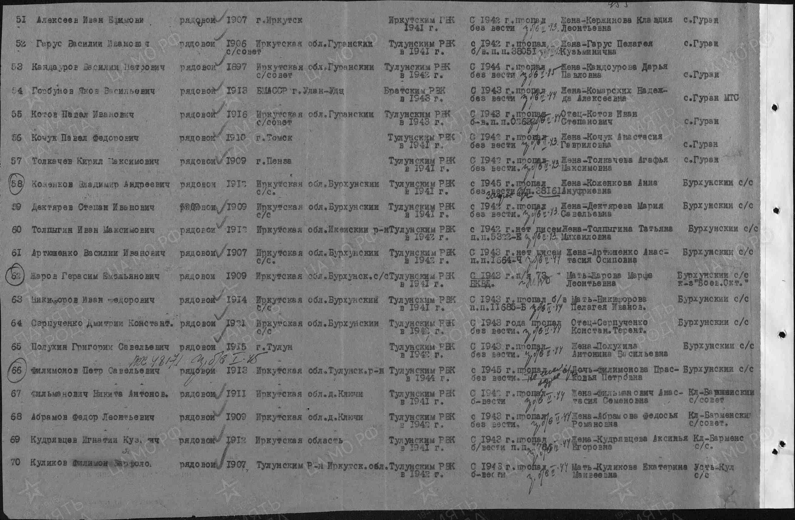 | Призван РВК | Тулунский РВК, Иркутская обл. |