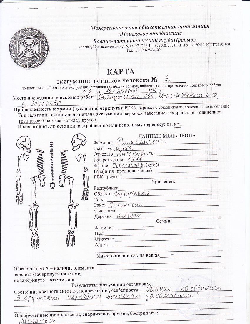 | Отряд | Военно-патриотический клуб "Прорыв" |