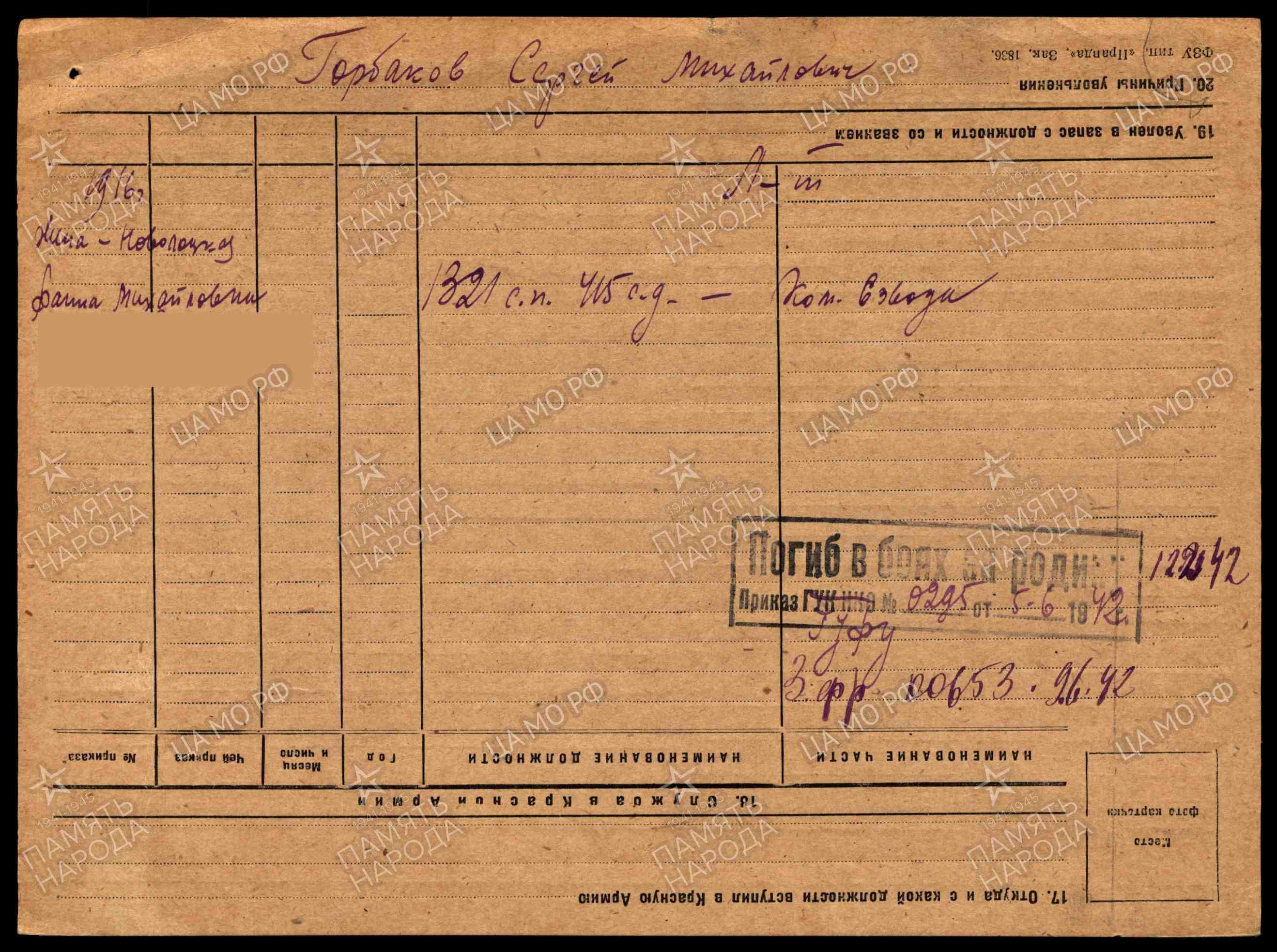 | Дата выбытия | 12.02.1942 |