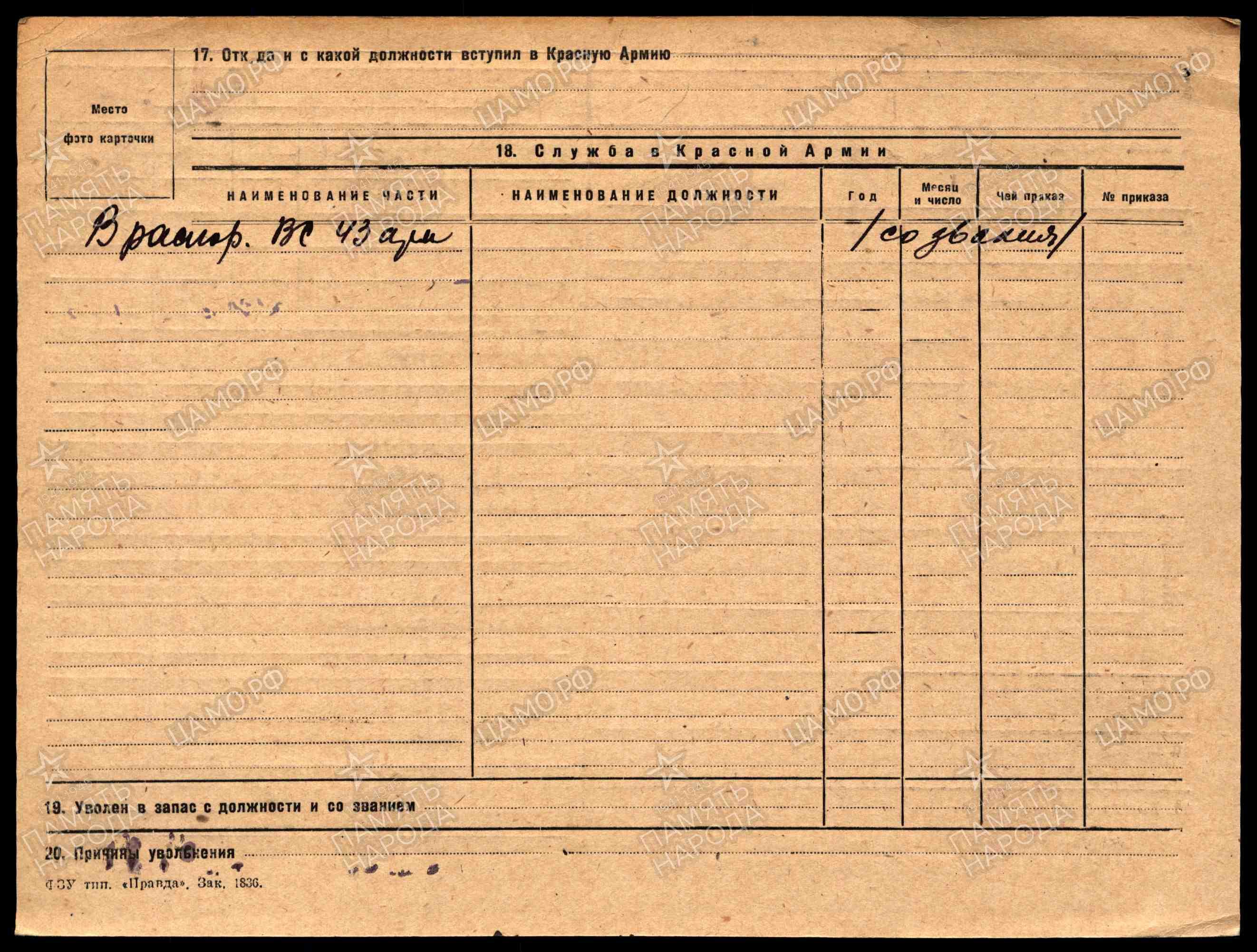 | Часть | 1321 сп 415 сд 43 А |
