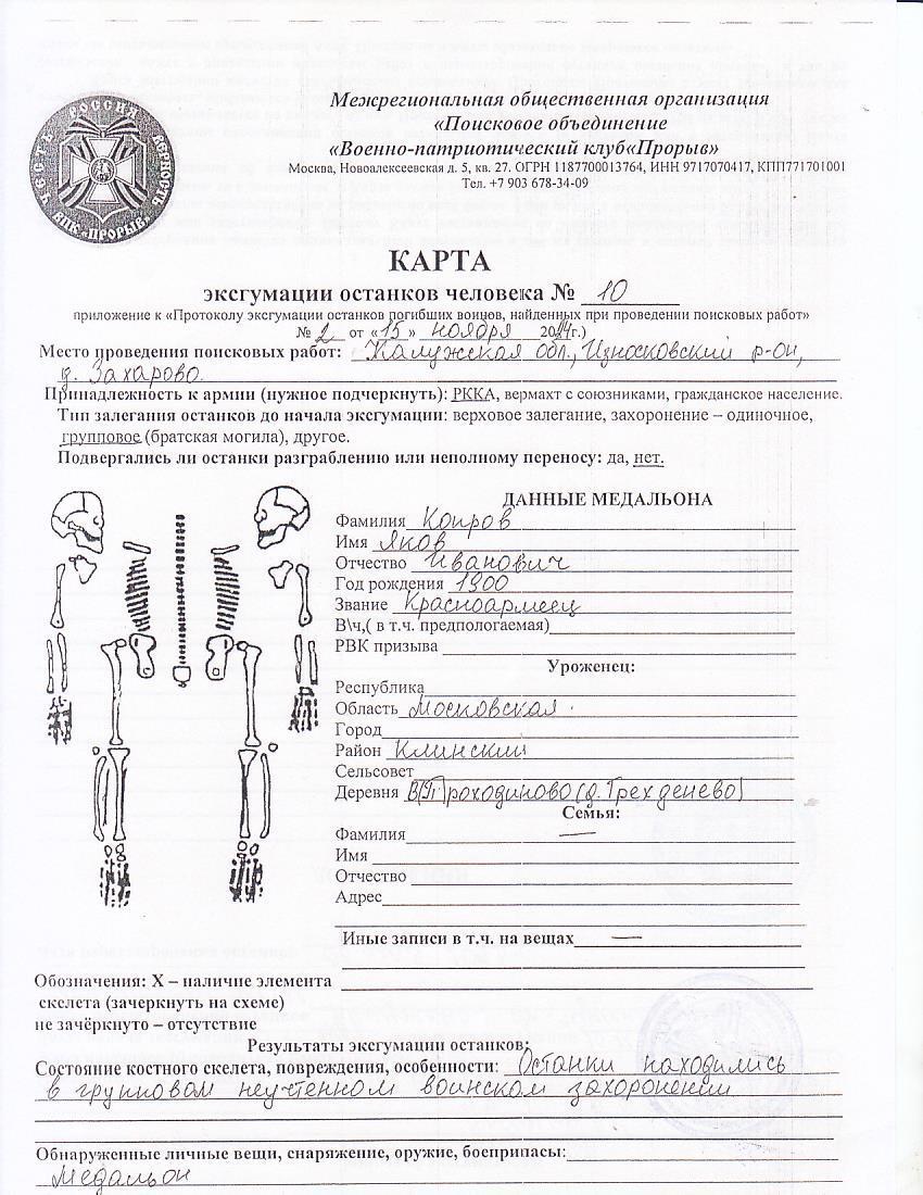 | Отряд | Военно-патриотический клуб "Прорыв" |